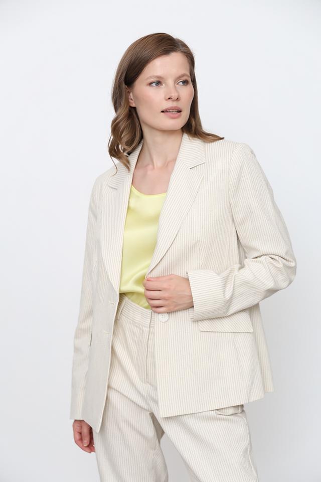 Жакет Taifun бежевого цвета в тонкую полоску – стильное и универсальное решение для создания элегантного образа. Классический крой и натуральный состав обеспечивают комфорт и удобство в носке. Состав: хлопок 83%, лен 17%