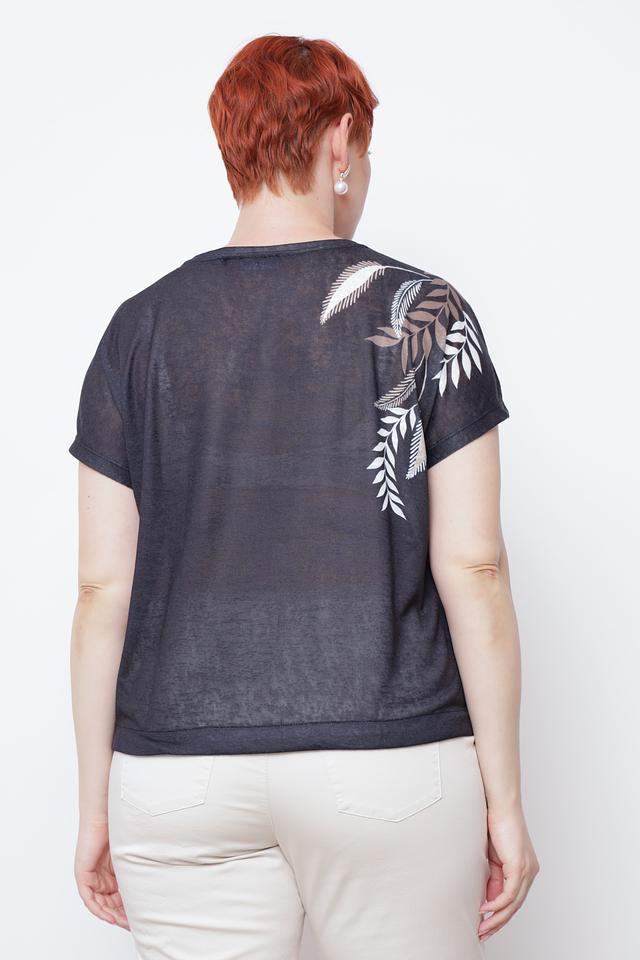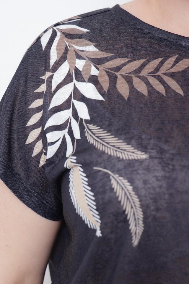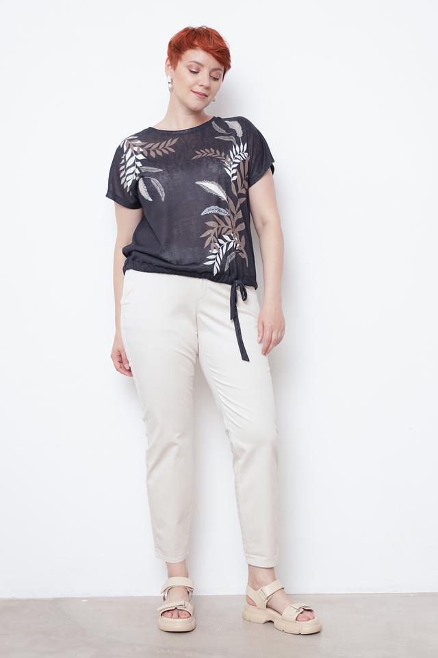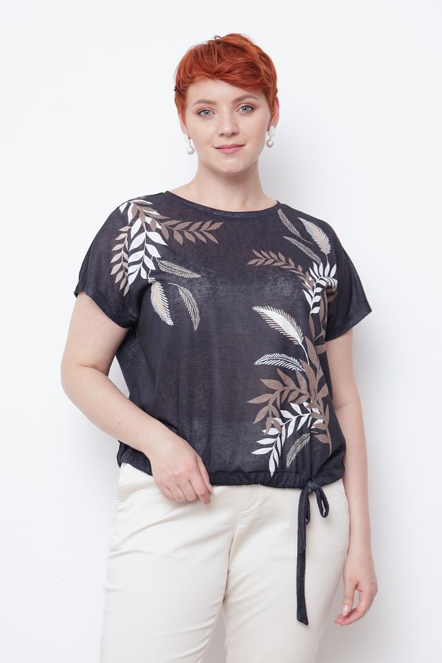 Эта блуза от Taifun – идеальный выбор для создания комфортного и стильного образа. Выполнена в чёрном цвете и украшена оригинальным принтом с изображением листьев золотистого и белого оттенков.