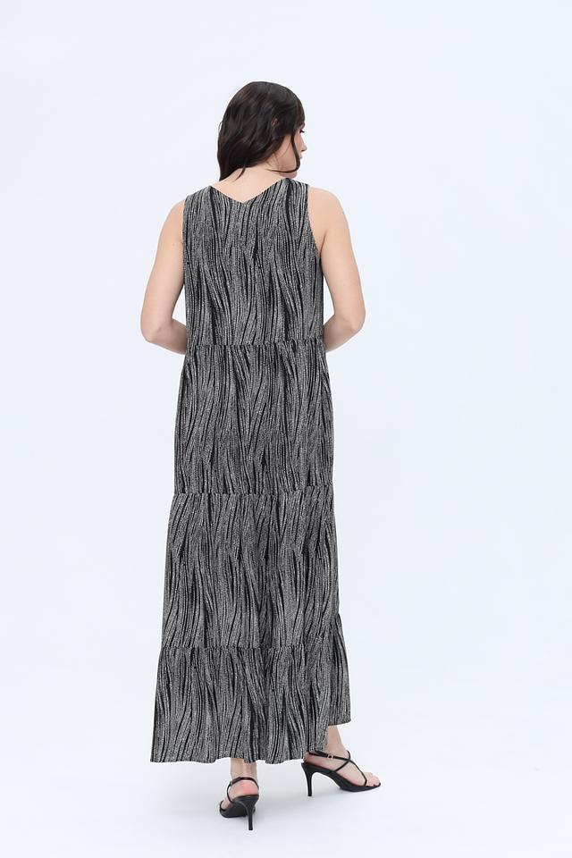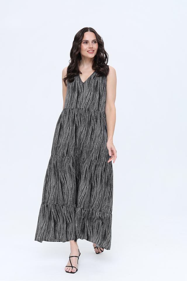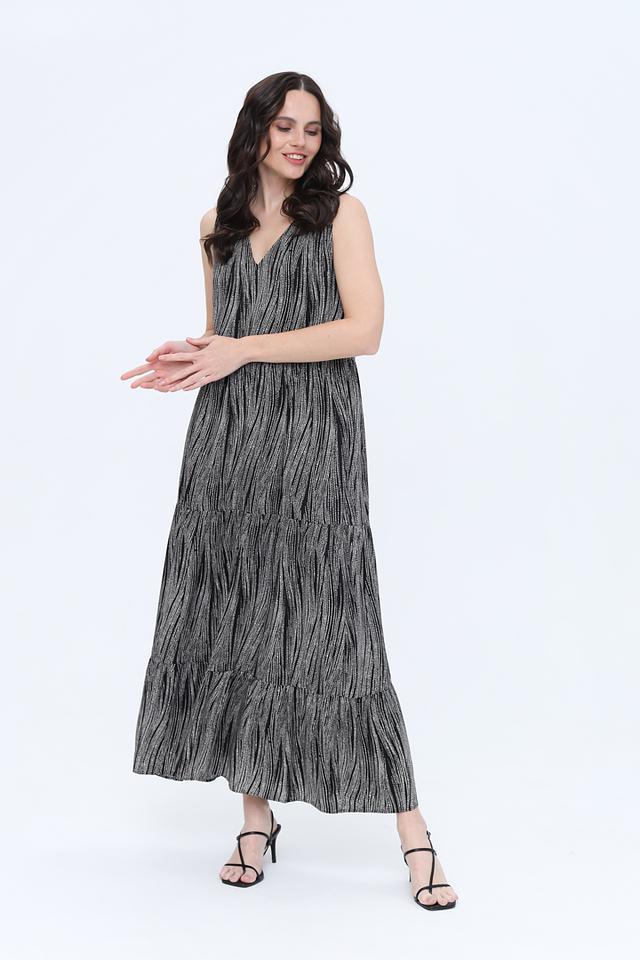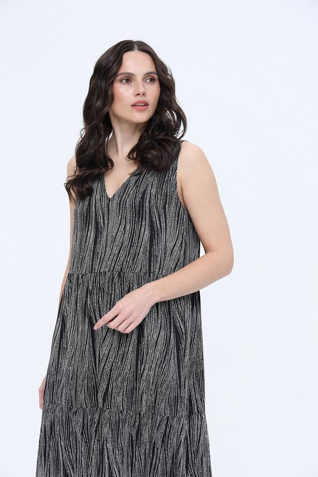 Платье имеет V-образный вырез и тонкие бретели, что подчеркивает женственность силуэта. Многослойная юбка создает эффект легкости и воздушности, а эластичная резинка на талии обеспечивает удобную посадку по фигуре.