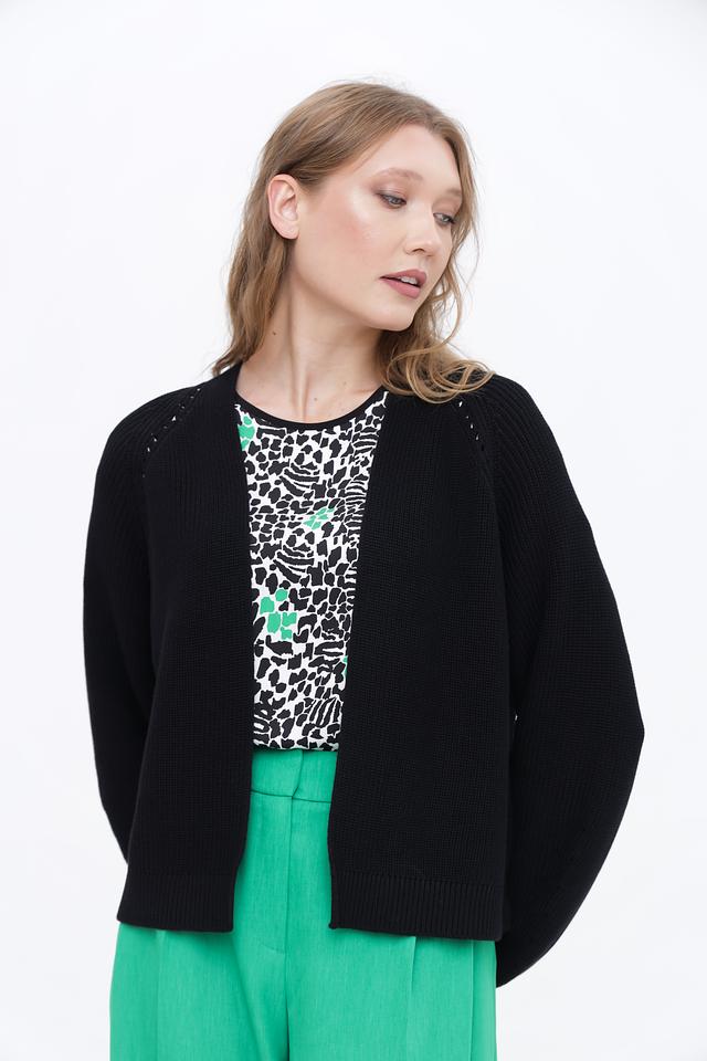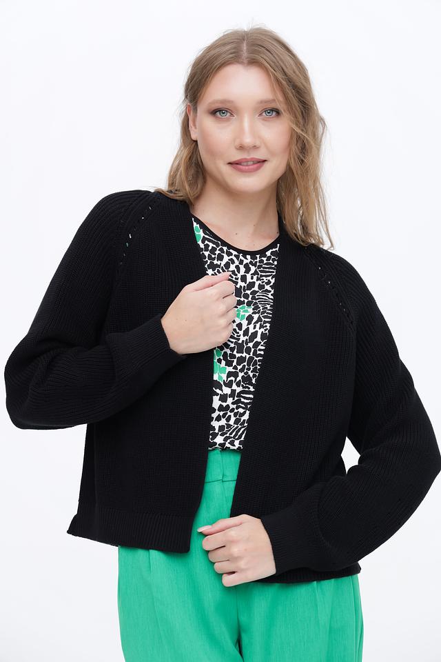 Чёрный кардиган от Taifun – это стильная и удобная модель с рукавами-фонариками. Изготовлен из 100% хлопка, обеспечивающего комфорт в носке. Идеально дополнит повседневный образ. Состав: хлопок 100%