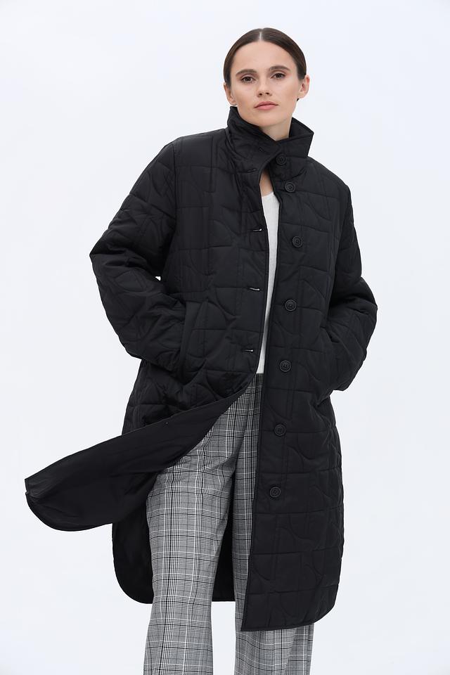 Чёрное стеганое пальто Taifun – это стильное и практичное решение для прохладной погоды. Прямой крой и пояс в комплекте позволяют создать женственный силуэт, а удобный воротник-стойка защитит от ветра. Состав: полиэстер 100%
