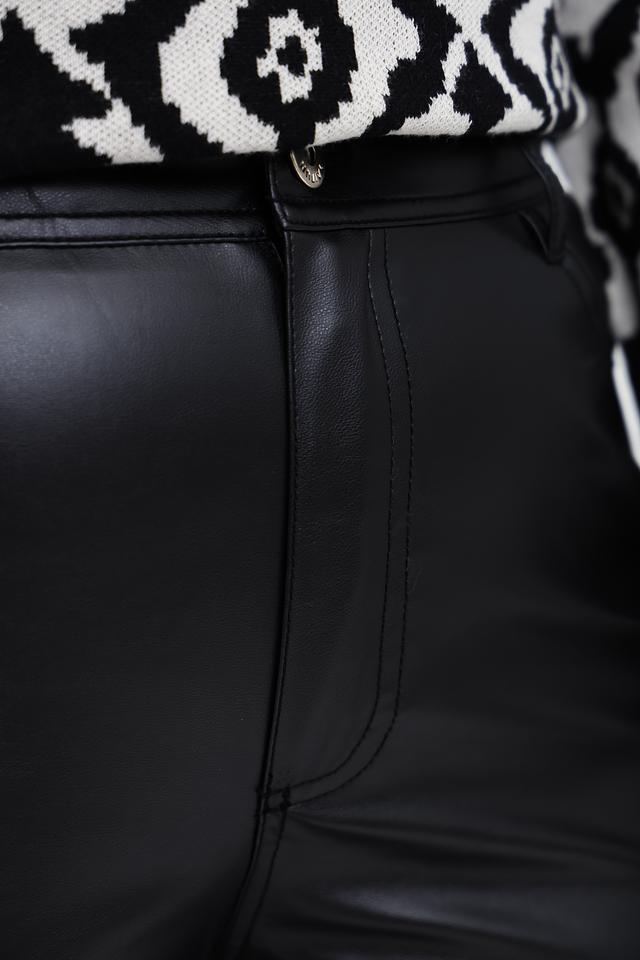 Брюки имеют высокую посадку, которая визуально удлиняет ноги и подчеркивает талию. Застежка на молнию и пуговицу обеспечивает надежную фиксацию. Данная модель идеально подойдет для создания как повседневных, так и вечерних образов.