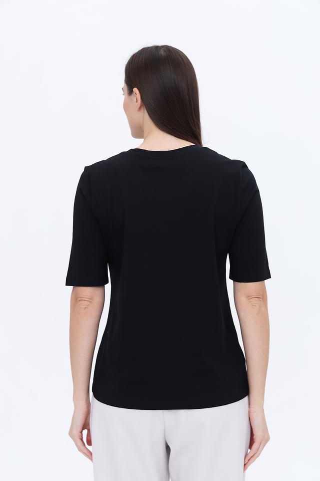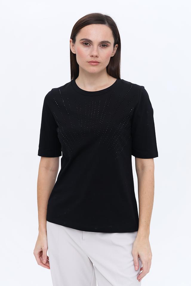 Чёрная футболка Taifun с оригинальным декором из страз. Изготовлена из 100% органического хлопка, обеспечивающего комфорт и воздухопроницаемость. Стильный и элегантный вариант для повседневного образа. Состав: хлопок органич. 100%