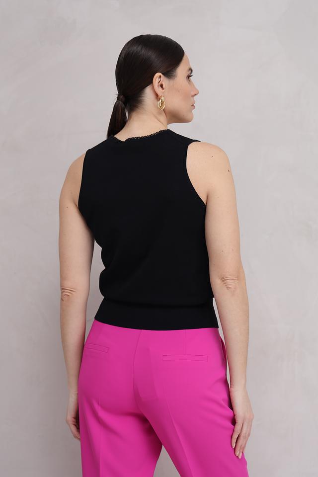 Этот чёрный топ от Taifun станет незаменимой базовой вещью в вашем гардеробе. Он идеально подходит для создания как повседневных, так и вечерних образов.