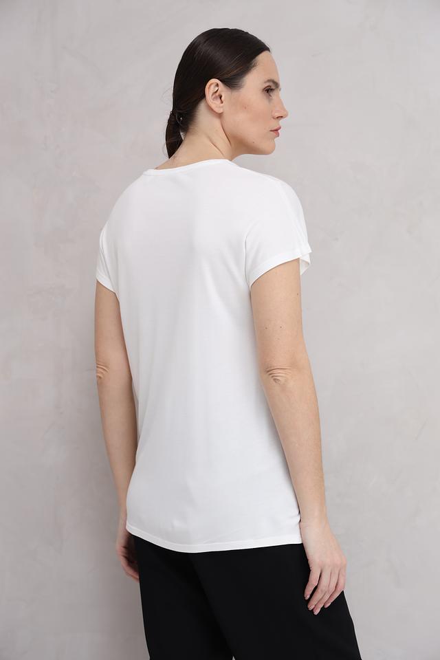 Белая футболка Taifun из 100% вискозы, украшенная цветочной вышивкой. Модель свободного кроя с короткими рукавами и округлым вырезом горловины. Состав: вискоза 100%