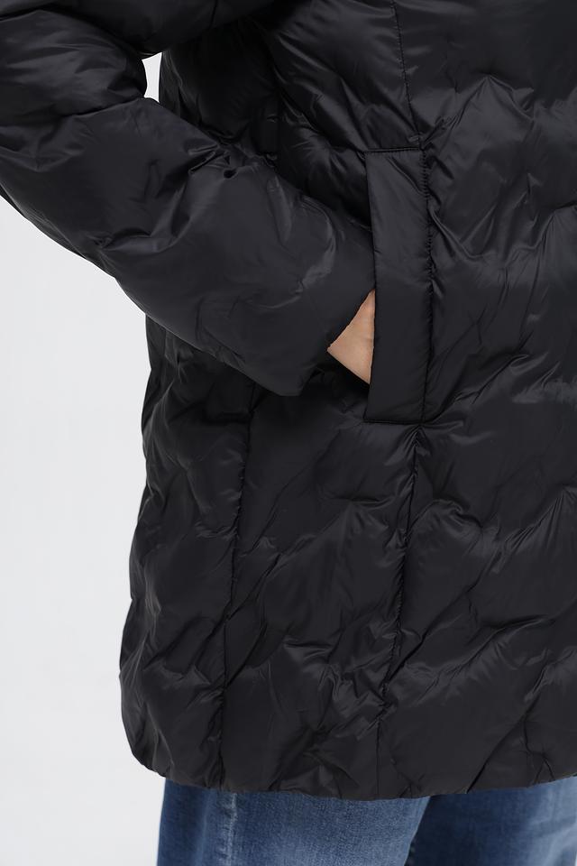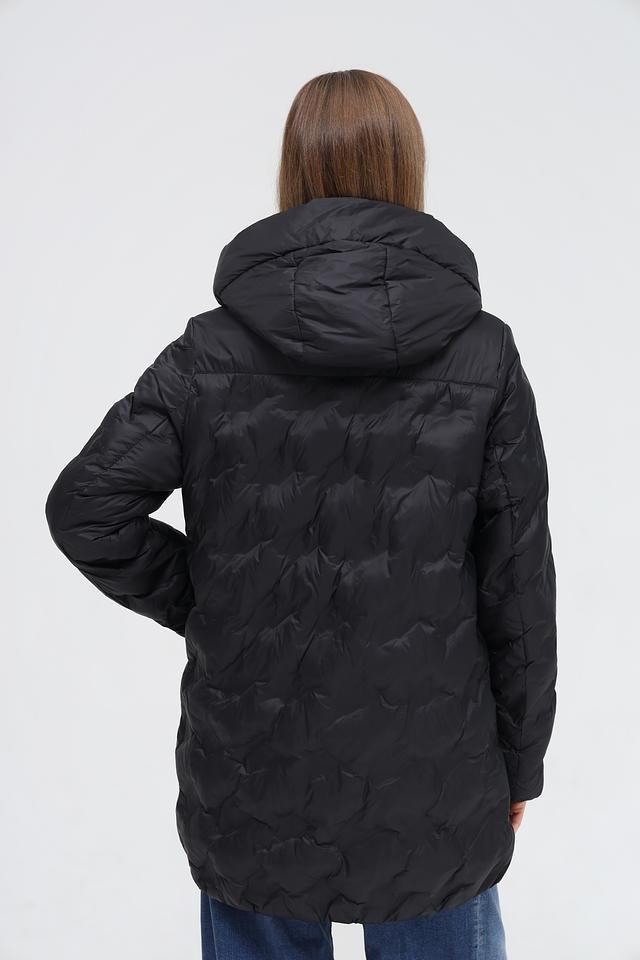 Куртка имеет стеганую текстуру, которая придает ей современный вид. Капюшон обеспечивает дополнительную защиту от непогоды, а молния позволяет быстро и удобно застегнуть куртку.