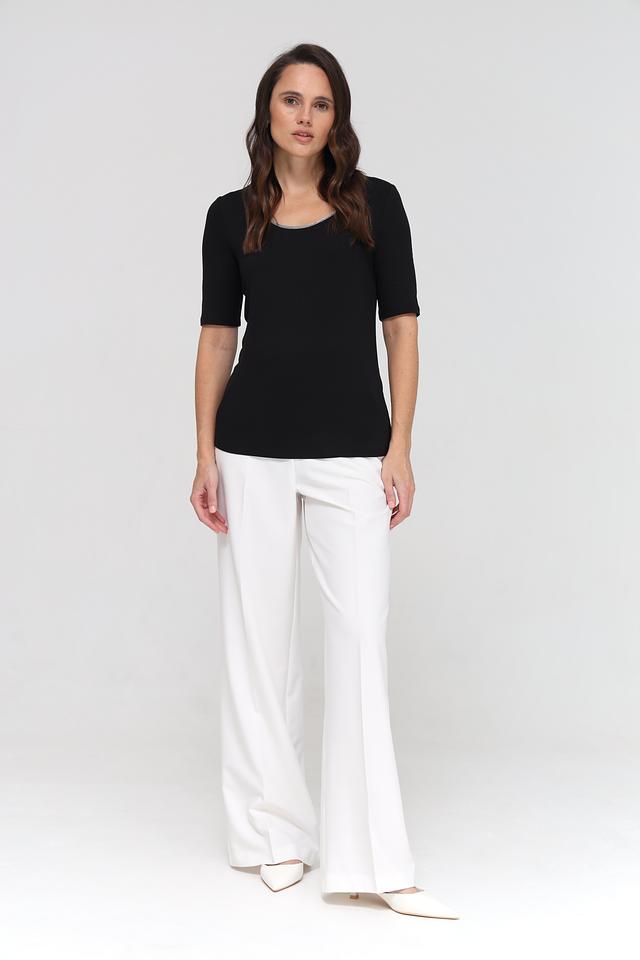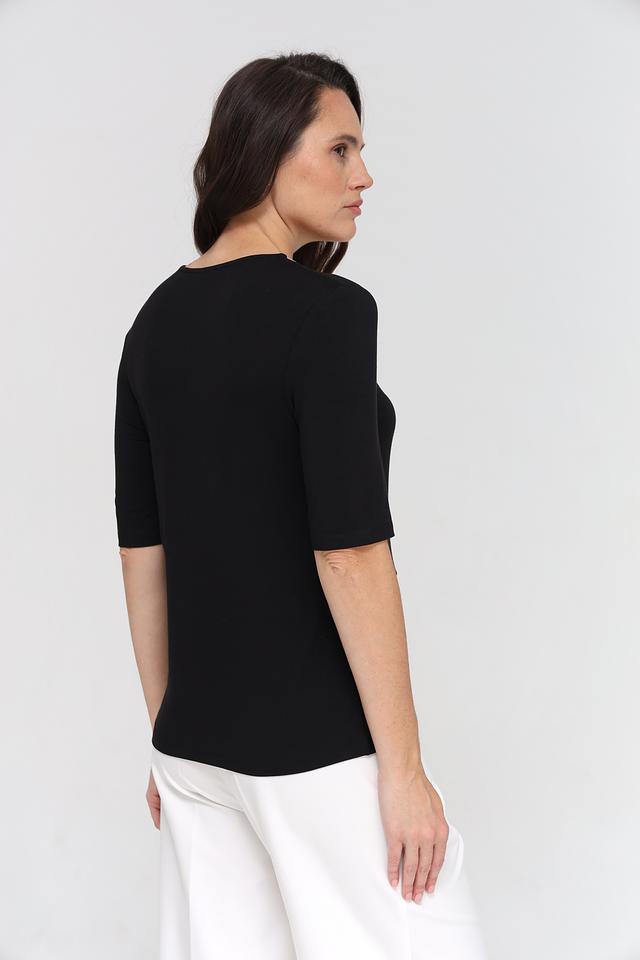 Состав ткани: 95% вискоза, 5% эластан. Эта футболка идеально сочетается с джинсами, брюками или юбками, и подходит для создания как повседневных, так и более элегантных образов. Она станет незаменимой вещью в вашем гардеробе.