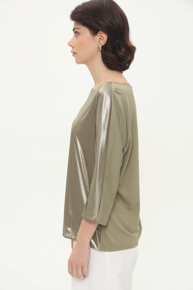 Эта блуза от Taifun выполнена из приятной на ощупь вискозы с добавлением эластана, что делает ее комфортной в носке и обеспечивает хорошую посадку по фигуре. Блуза имеет оливковый цвет с легким металлическим блеском, который придает ей особый шарм.