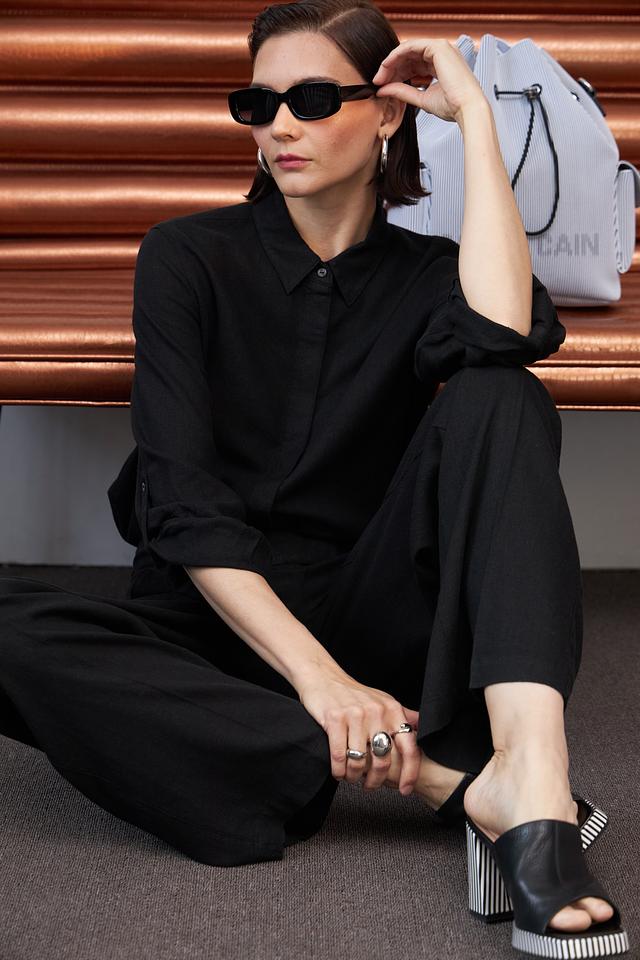 Эта блуза от Taifun выполнена в классическом чёрном цвете и станет незаменимой частью вашего гардероба. Она сочетает в себе элегантность и практичность, благодаря составу из 70% вискозы и 30% льна.