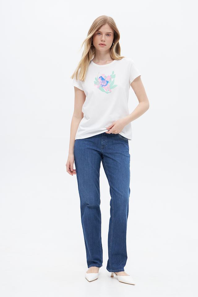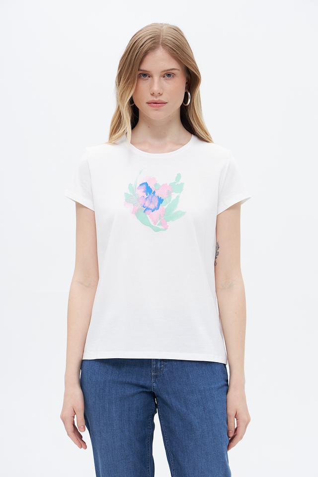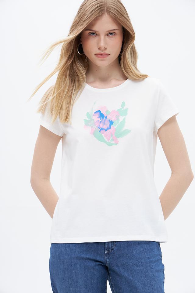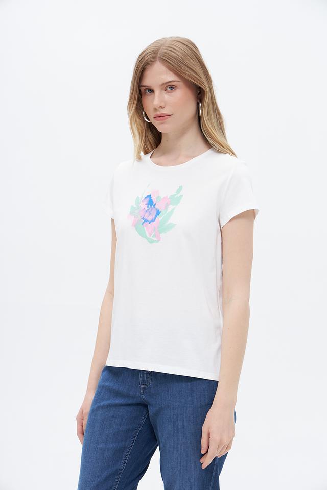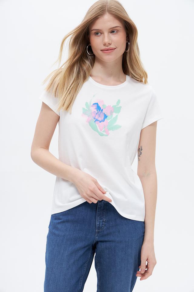 Белая футболка Taifun с ярким цветочным принтом, выполненная из 100% хлопка. Удобный крой и натуральный материал обеспечивают комфорт в повседневной носке. Состав: хлопок 100%