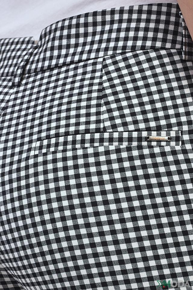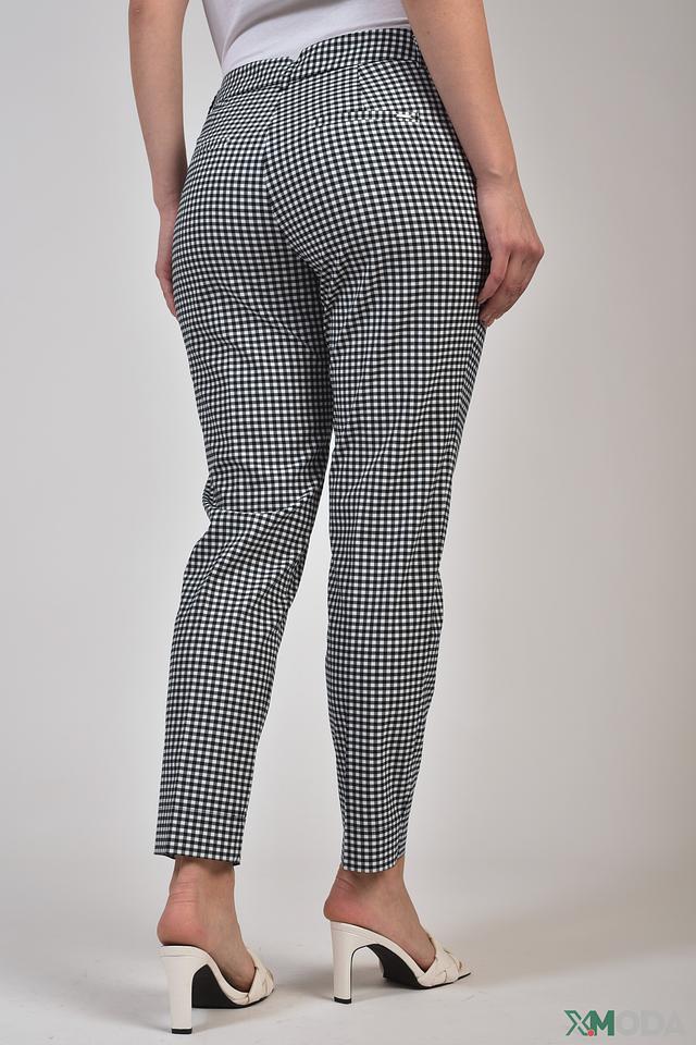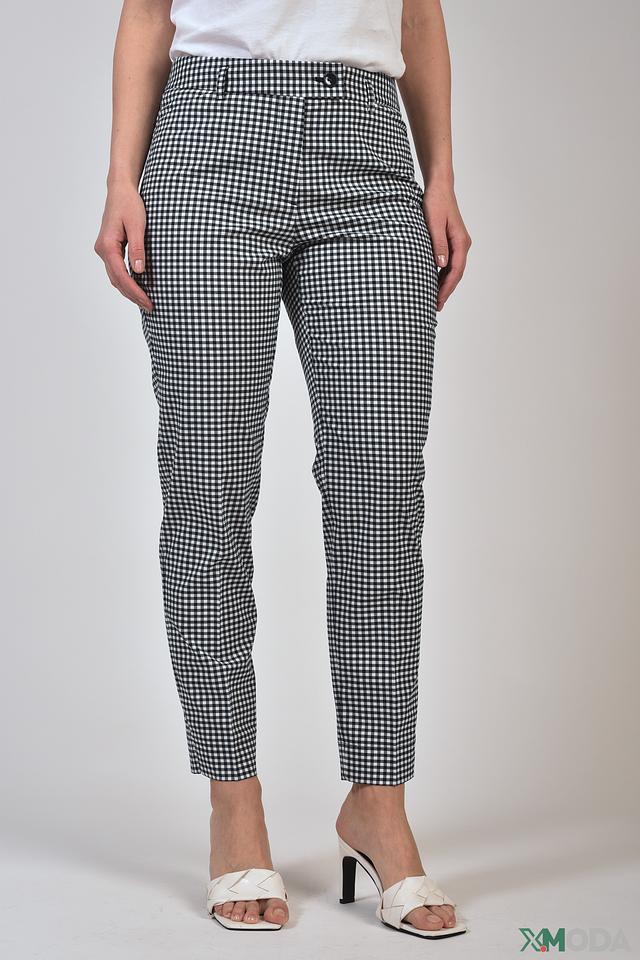 Эти элегантные брюки от Taifun станут незаменимой частью вашего гардероба. Классический крой и актуальный чёрно-белый клетчатый принт делают их подходящими для различных случаев – от офиса до прогулок по городу.