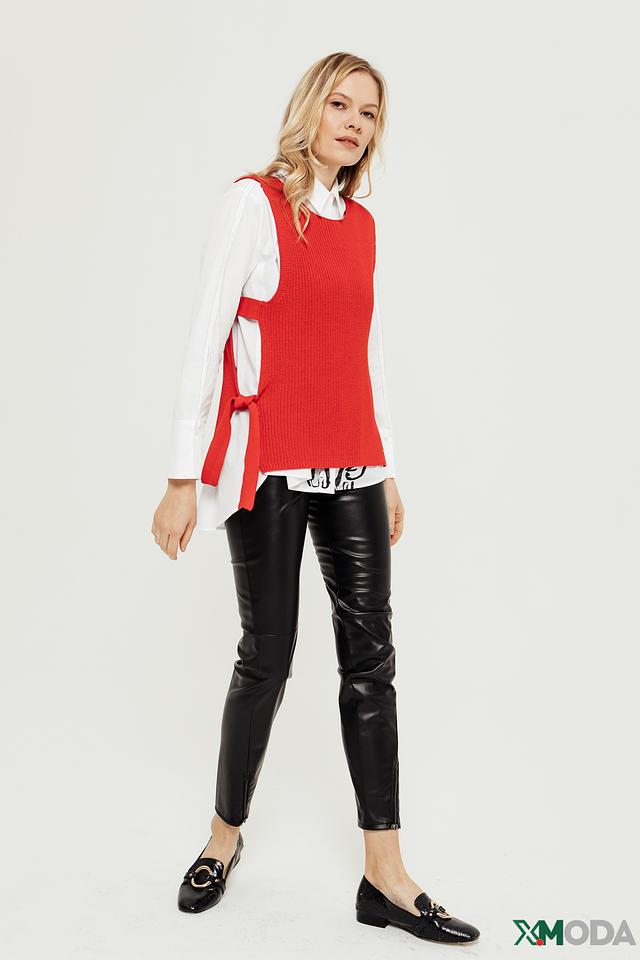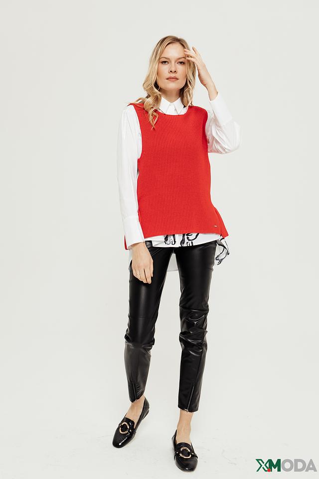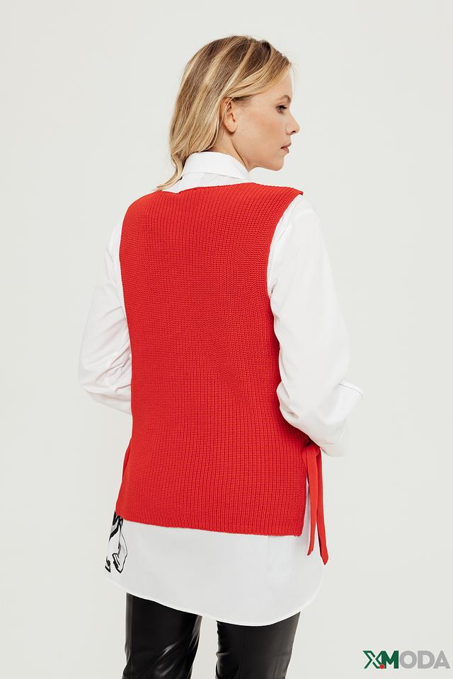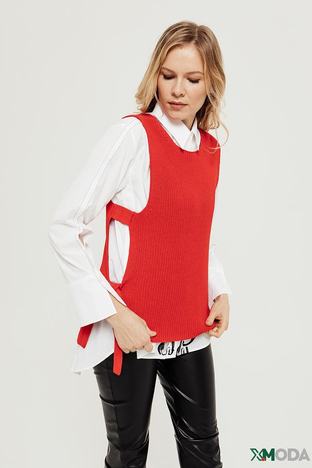 Яркий красный цвет и оригинальный вязаный узор делают этот жилет заметным акцентом в любом образе. Модель имеет прямой крой и стандартную длину, подходящую для большинства типов фигур.