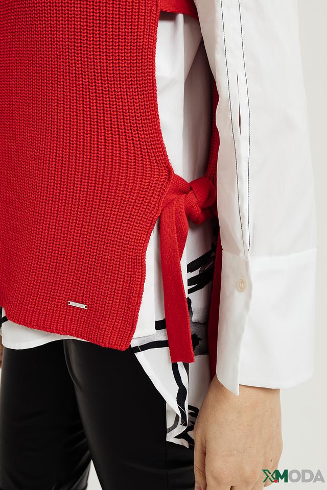 Красный вязаный жилет Taifun – стильная и удобная модель для создания многослойных образов. Изготовлен из 100% хлопка, имеет боковые завязки для регулировки силуэта и акцентный вязаный узор. Состав: хлопок 100%