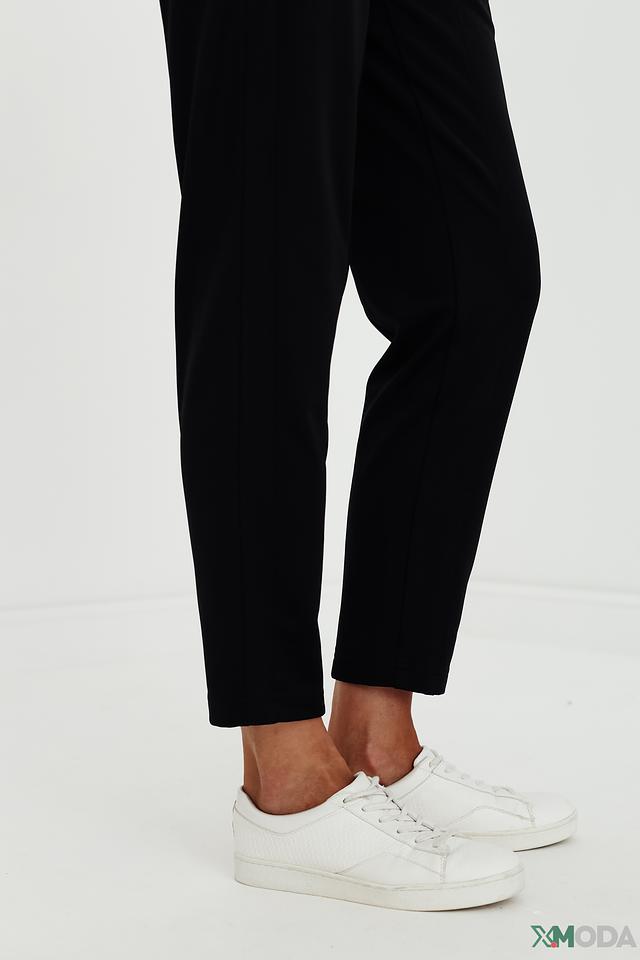 Брюки имеют прямой крой и слегка зауженный силуэт к низу, что обеспечивает комфортную посадку по фигуре. Эластичный пояс дополнен шнурком для регулировки посадки. Манжеты внизу брюк придают образу современный вид.