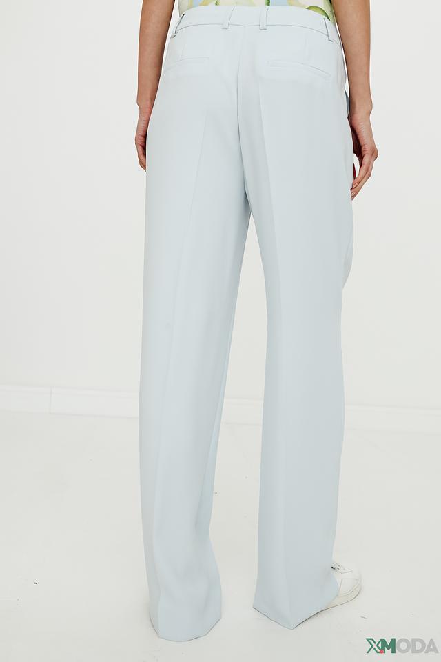 Брюки имеют прямой крой и высокую посадку, что создает элегантный и удлиненный силуэт. Классический дизайн дополнен аккуратными складками, придающими брюкам более изысканный вид.