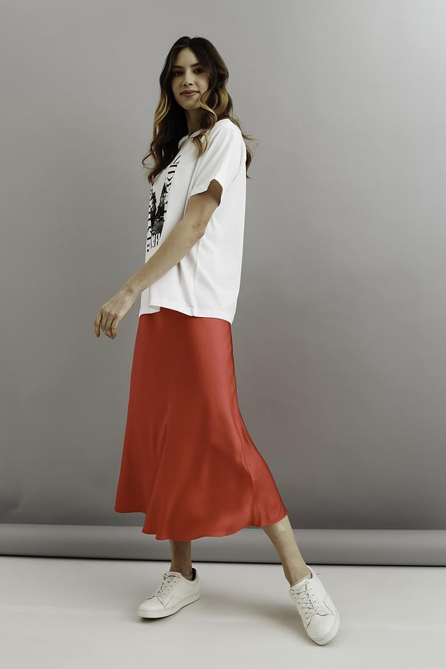 Модель имеет прямой, свободный крой, который не сковывает движений и подходит для разных типов фигуры. Длина миди делает юбку универсальной – она уместна как в повседневных, так и в более формальных образах.