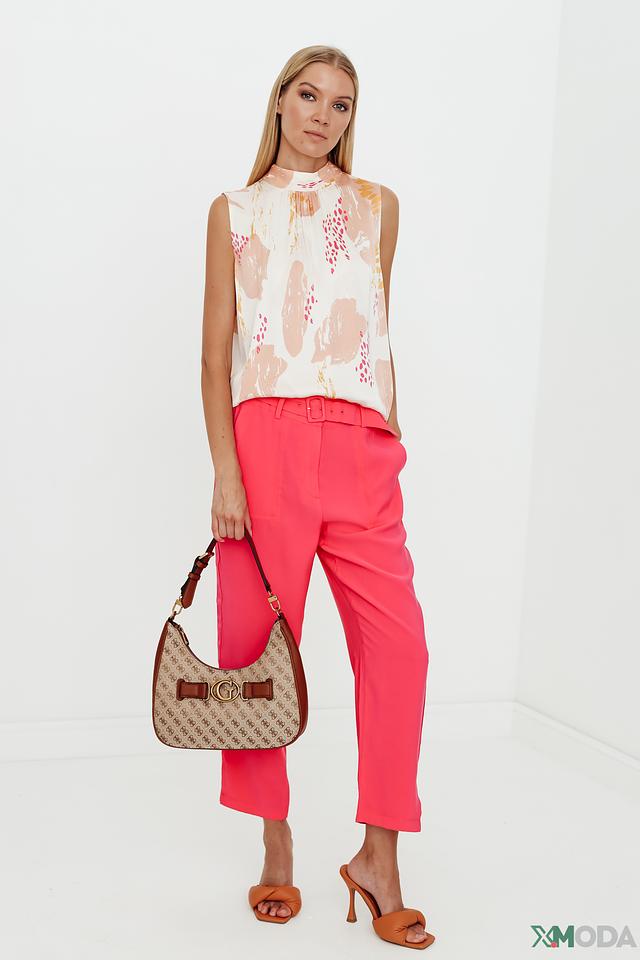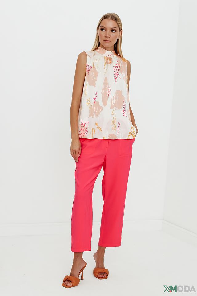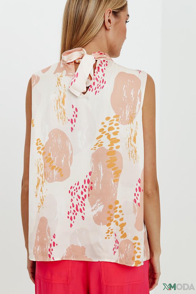 Особенность этого топа – яркий и оригинальный принт в абстрактном стиле, выполненный в бежевых, розовых и горчичных тонах. Он добавит вашему образу индивидуальности и неповторимости.
