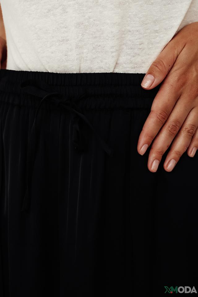 Брюки выполнены из 100% вискозы, что обеспечивает комфорт и приятные ощущения при носке. Завышенная талия визуально удлиняет ноги и подчеркивает фигуру. Удобный пояс на завязках позволяет регулировать посадку по фигуре.