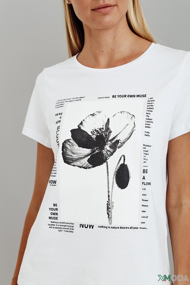 Футболка Taifun с принтом мак белый