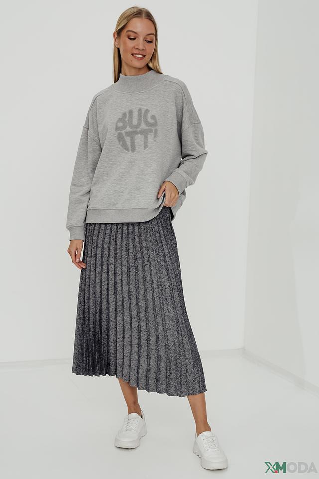 Стильная юбка Taifun серого цвета с мелким принтом выполнена из лёгкой ткани и имеет удобный эластичный пояс. Плиссированная фактура придает модели изящный и женственный вид. Состав: полиэстер 65%, вискоза 35%