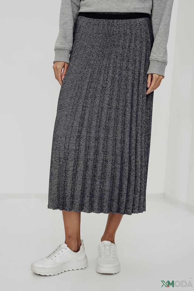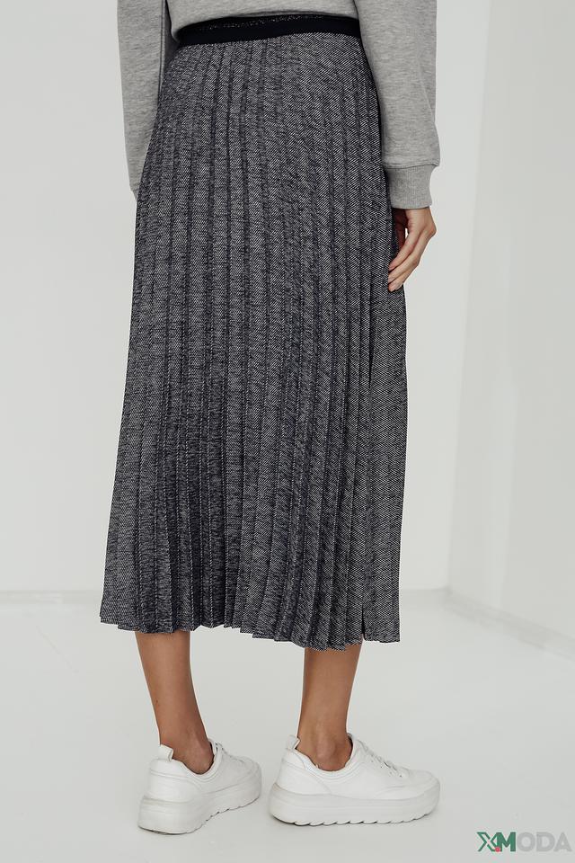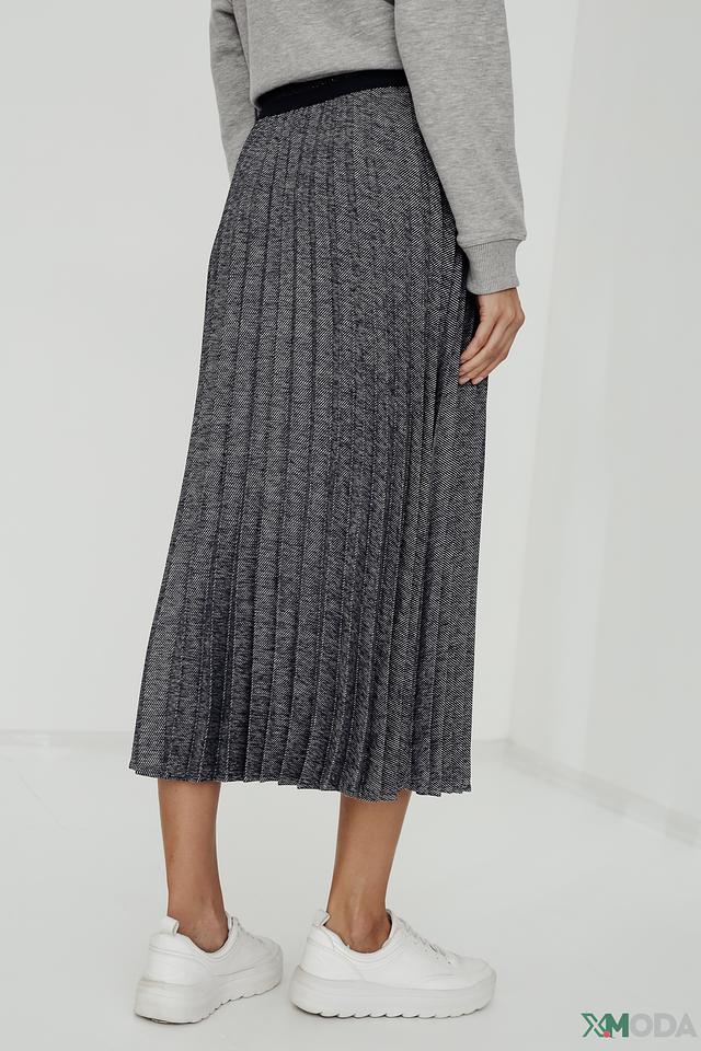 Юбка имеет классическую длину миди и плиссированную фактуру, что обеспечивает комфорт и свободу движений. Удобный эластичный пояс гарантирует идеальную посадку по фигуре.