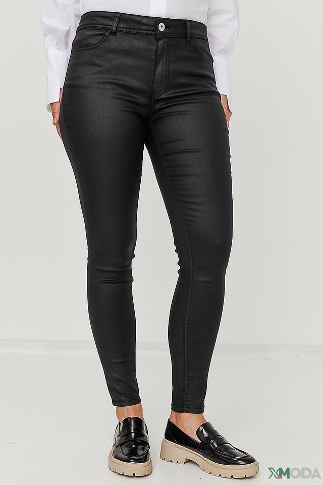 Брюки плотно облегают фигуру, подчеркивая ее достоинства, но при этом не сковывают движений благодаря эластану в составе. Высокая посадка обеспечивает комфортную посадку и визуально удлиняет ноги.