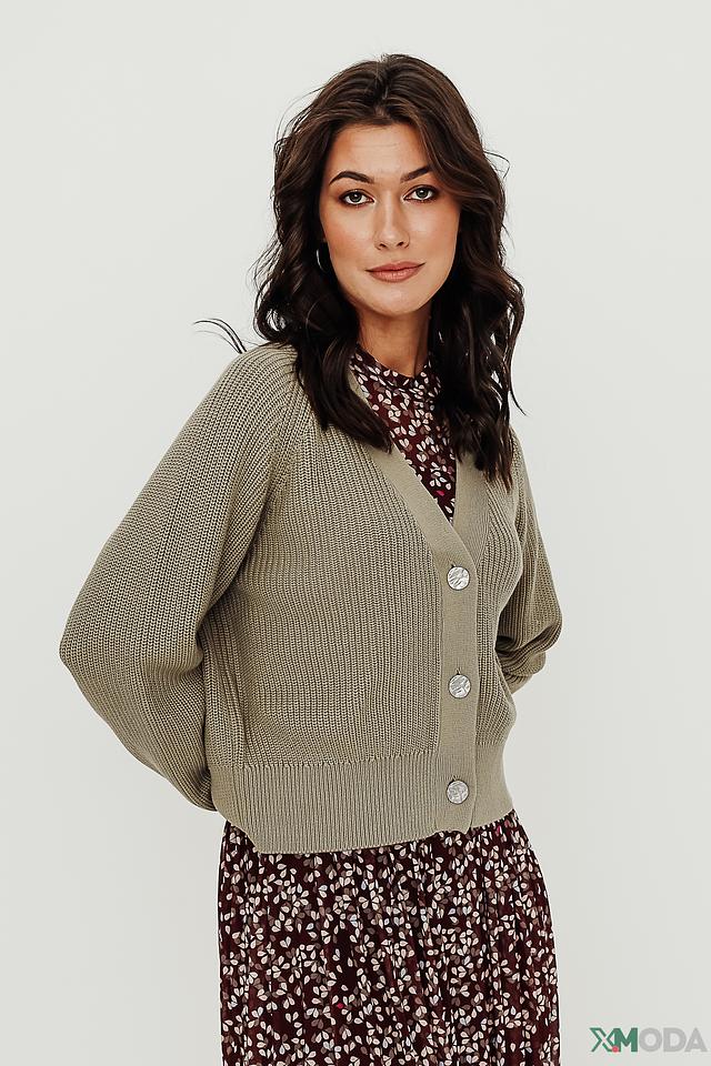 Благодаря своему оливковому оттенку, этот кардиган легко сочетается с различными элементами гардероба, от повседневных джинсов до элегантных платьев. Он станет незаменимой вещью в вашем гардеробе в прохладную погоду.
