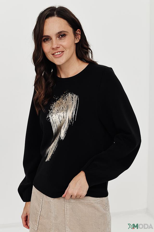 Чёрный пуловер Taifun с оригинальным принтом в виде крыльев станет стильным дополнением к вашему гардеробу. Модель выполнена из мягкого и приятного к телу материала, обеспечивающего комфорт в носке. Состав: модал 48%, полиэстер 47%, эластан 5%