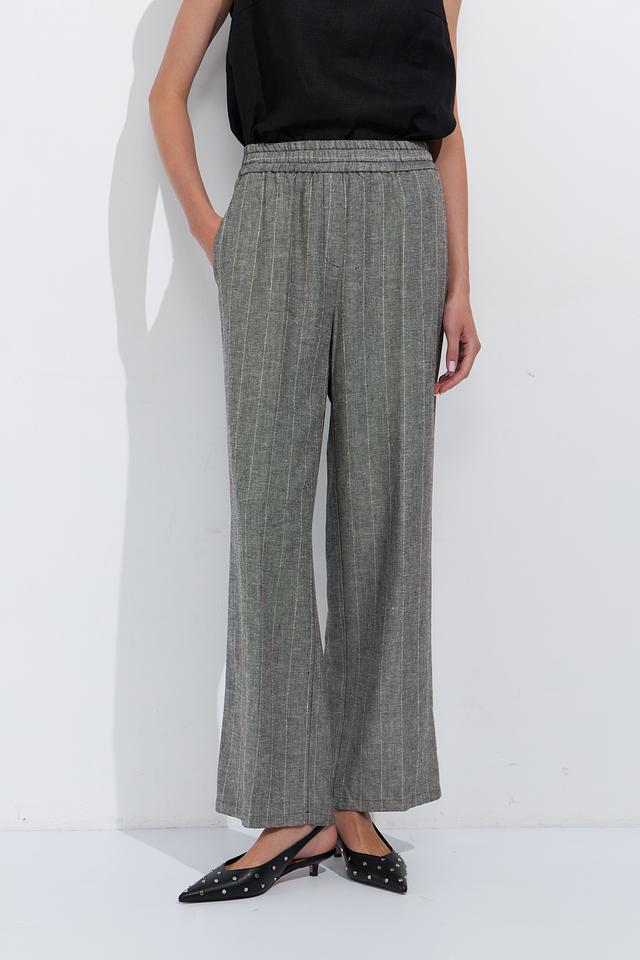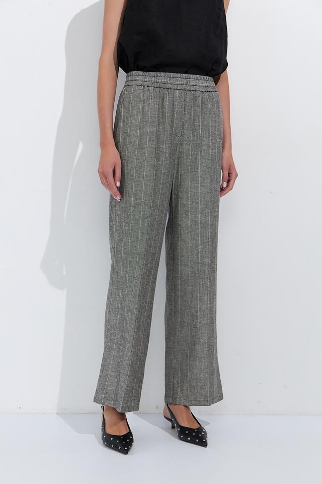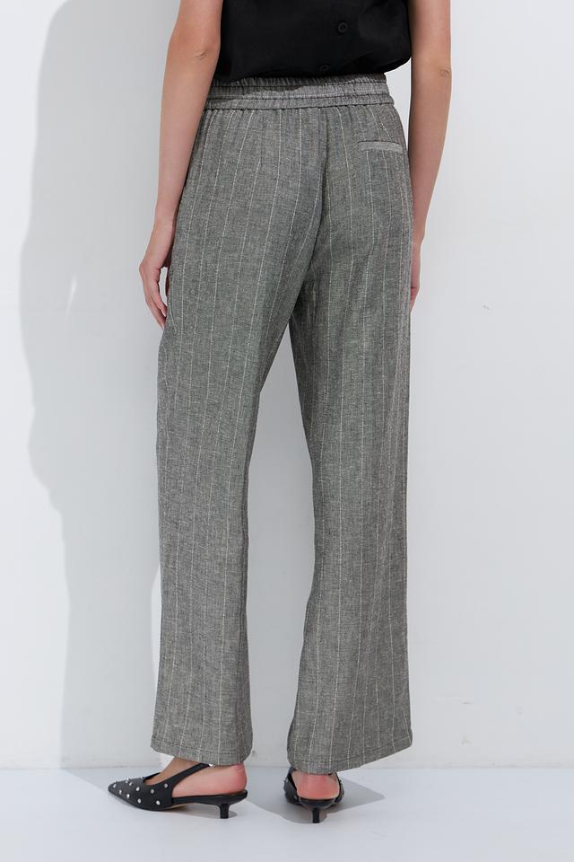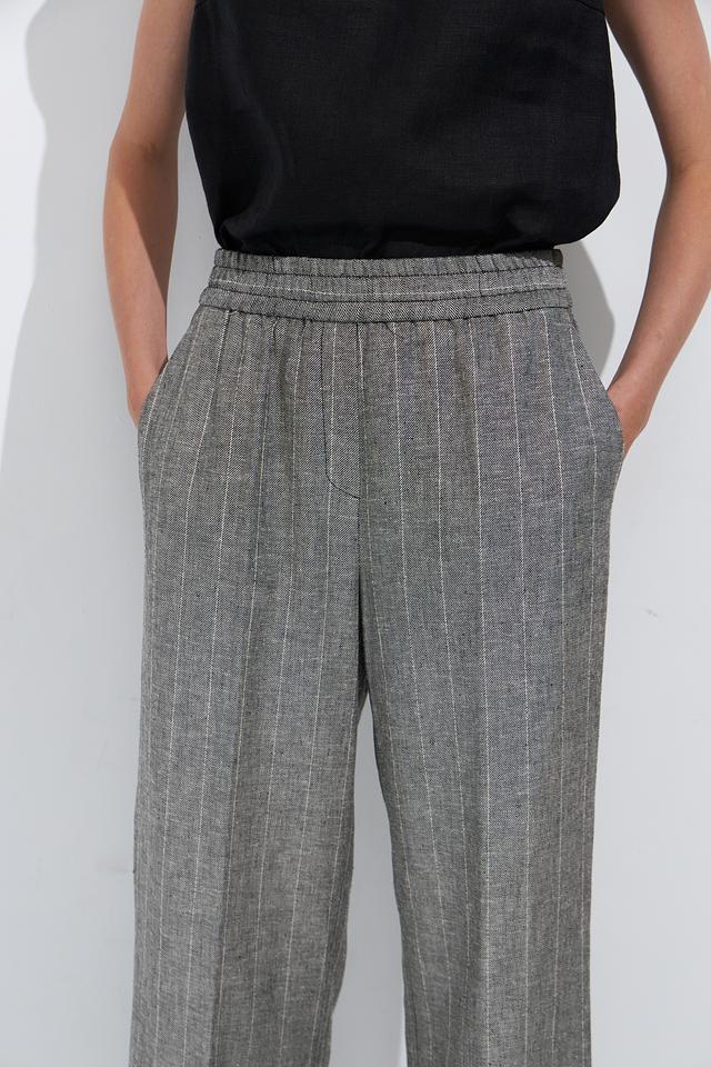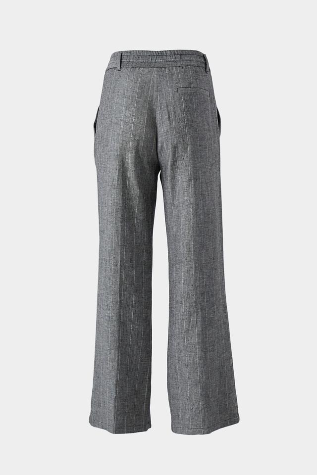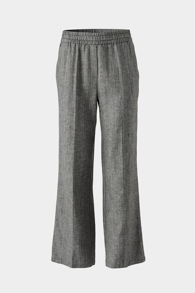 Женские брюки Ten ways to be серого цвета с вертикальной полоской — стильное и комфортное решение для создания повседневных образов. Модель выполнена из лёгкой ткани на основе вискозы и льна, имеет эластичный пояс и широкие штанины. Состав: вискоза 70%, лен 30%