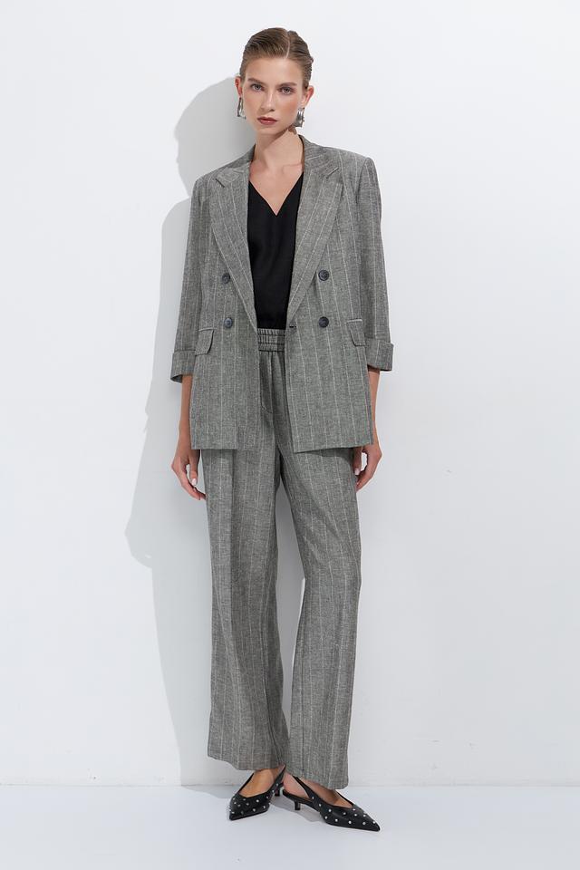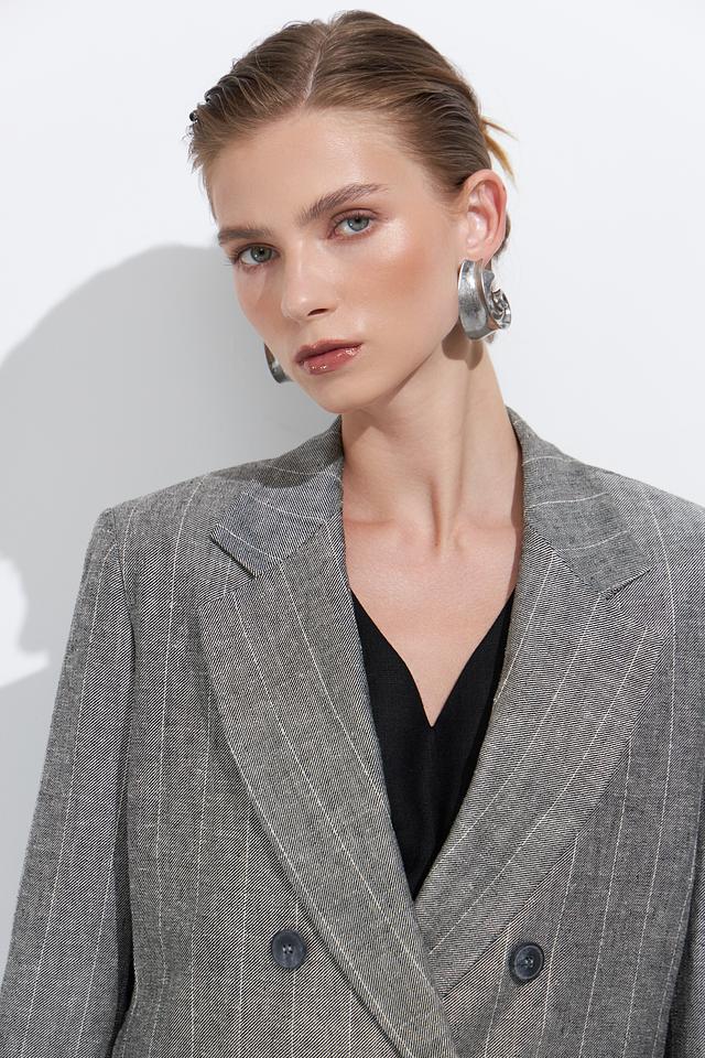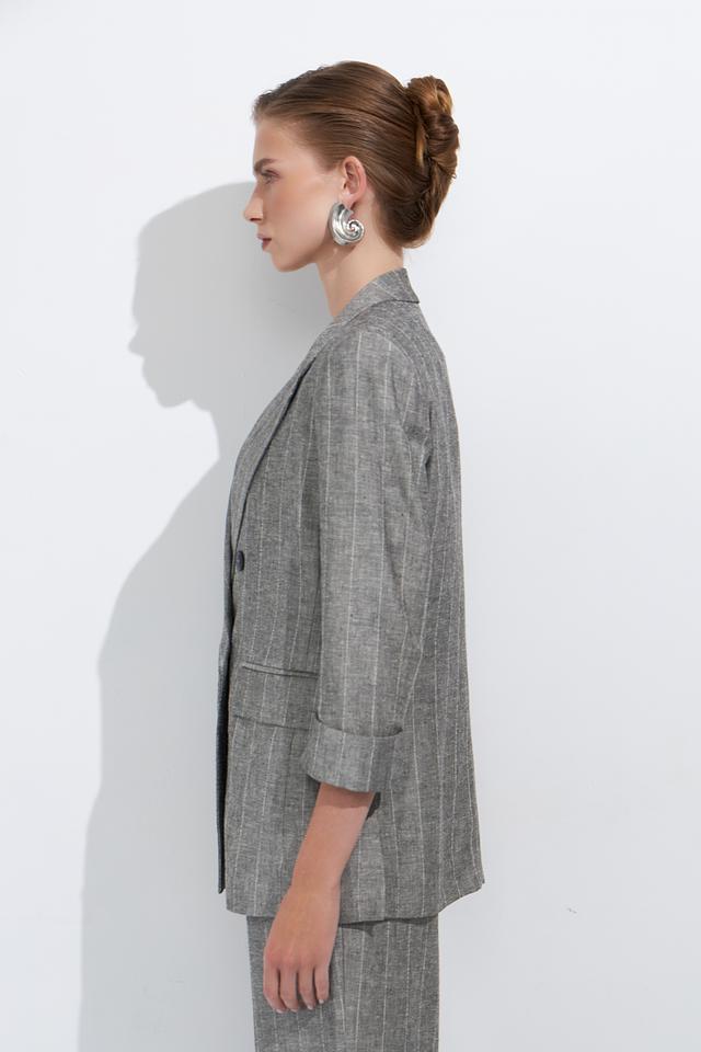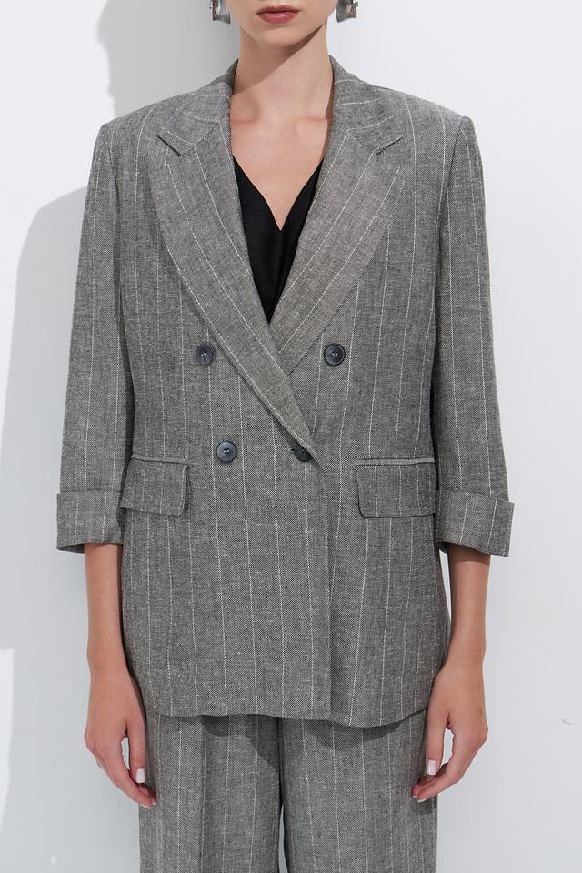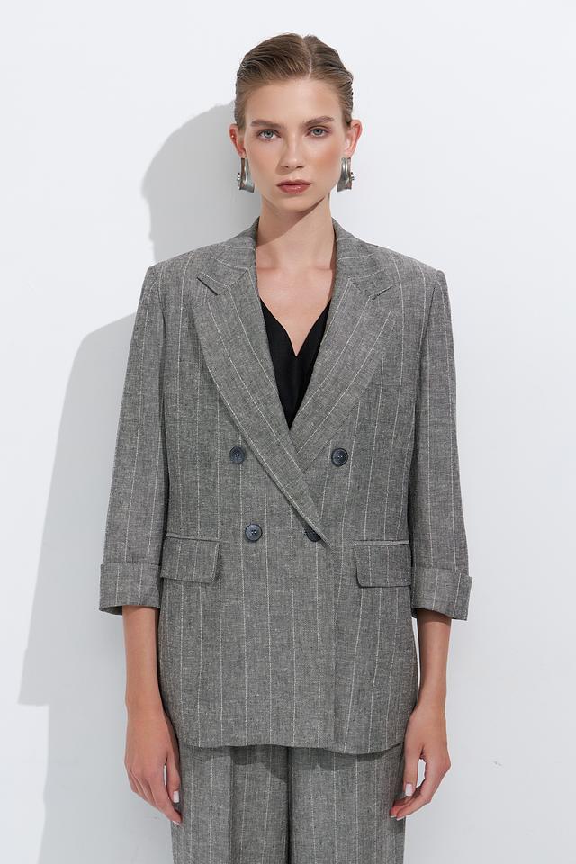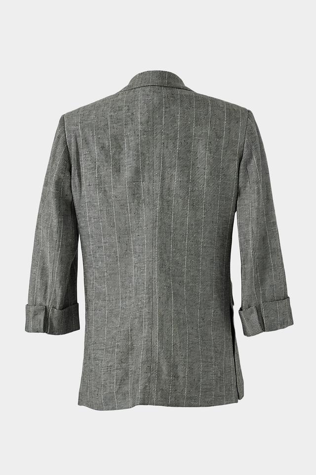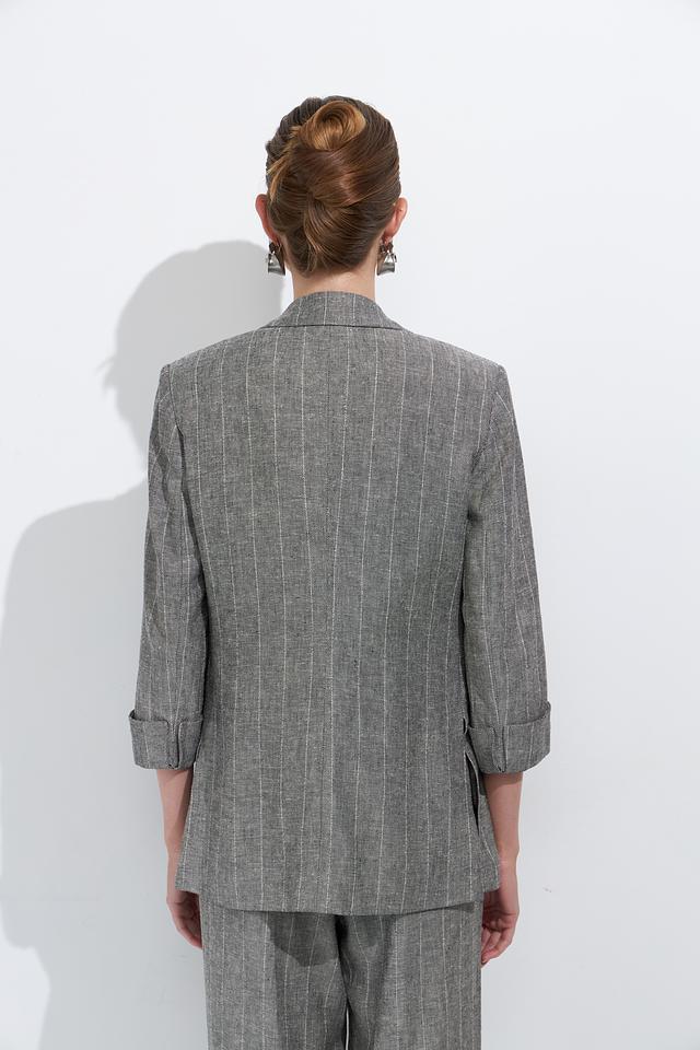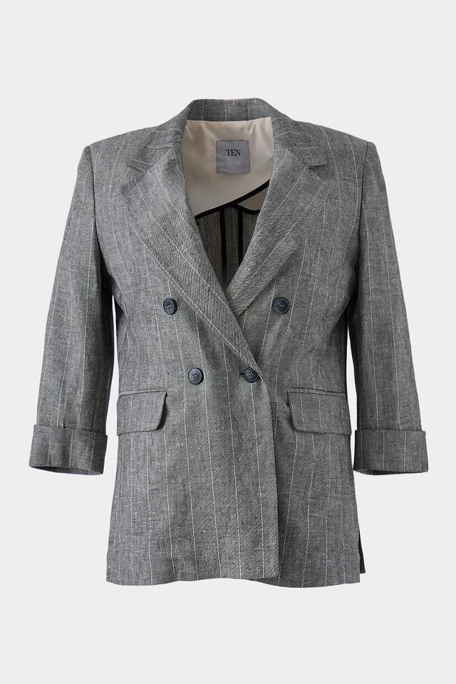 Стильный жакет Ten ways to be серого цвета в тонкую полоску станет отличным дополнением к вашему гардеробу. Модель выполнена в свободном крое с 3/4 рукавами и двубортной застежкой. Состав: вискоза 70%, лен 30%