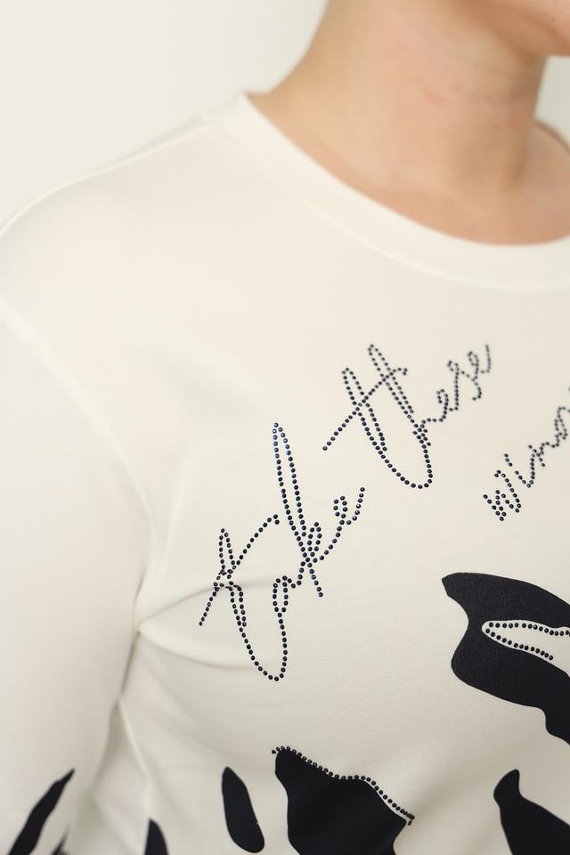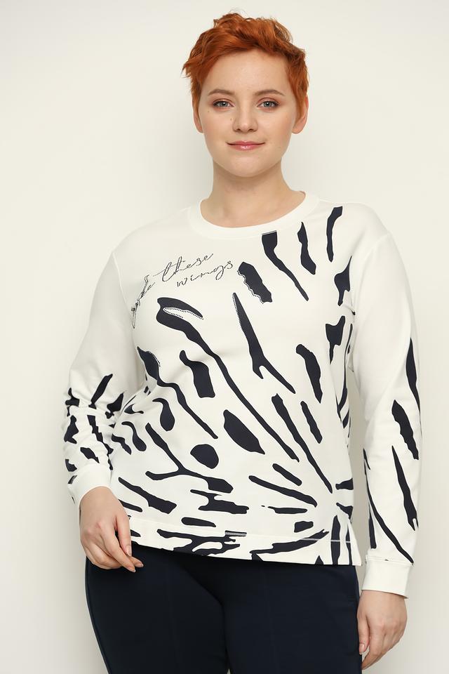 Женский лонгслив Thomas Rabe белого цвета с оригинальным абстрактным принтом и надписью. Изготовлен из мягкого и приятного к телу сочетания хлопка, вискозы и эластана, обеспечивающего комфорт при носке. Состав: хлопок 66%, вискоза 30%, эластан 4%