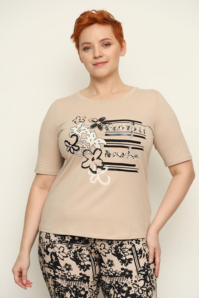 Бежевая футболка от Thomas Rabe с оригинальным цветочным принтом. Изготовлена из мягкого хлопка с добавлением эластана для комфорта и лучшей посадки. Идеальный выбор для создания повседневного образа. Состав: хлопок 92%, эластан 8%