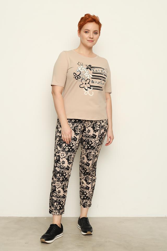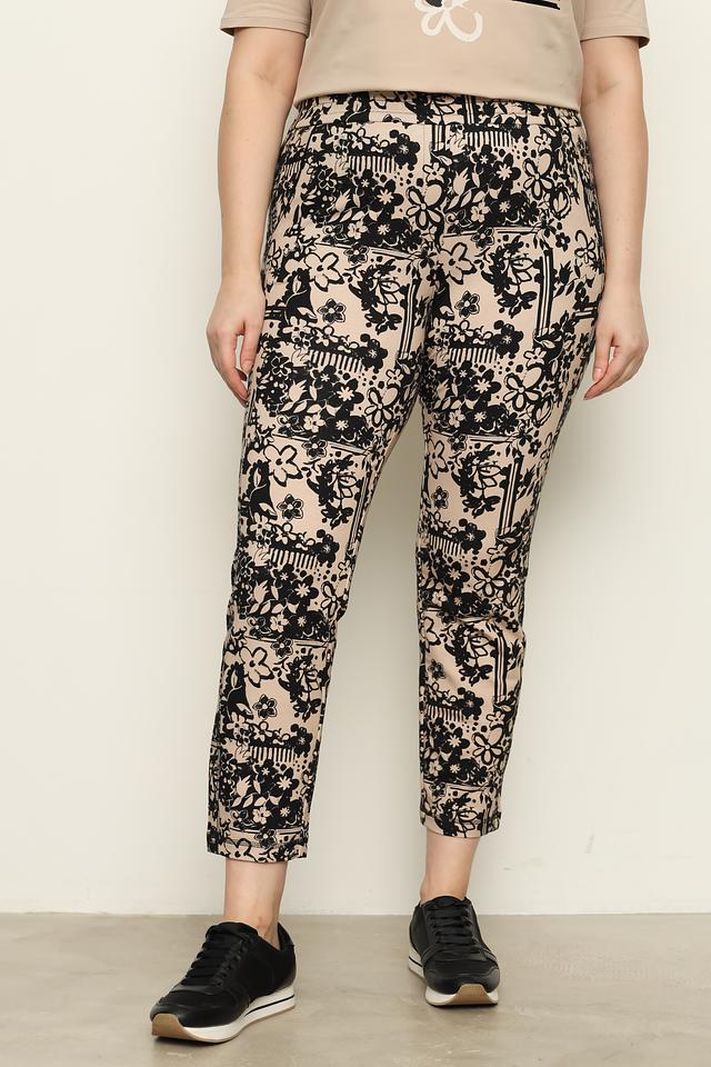 Представляем вашему вниманию стильные брюки от бренда Thomas Rabe. Эта модель выполнена в бежевом цвете и украшена ярким цветочным принтом, который придаёт образу женственность и лёгкость.