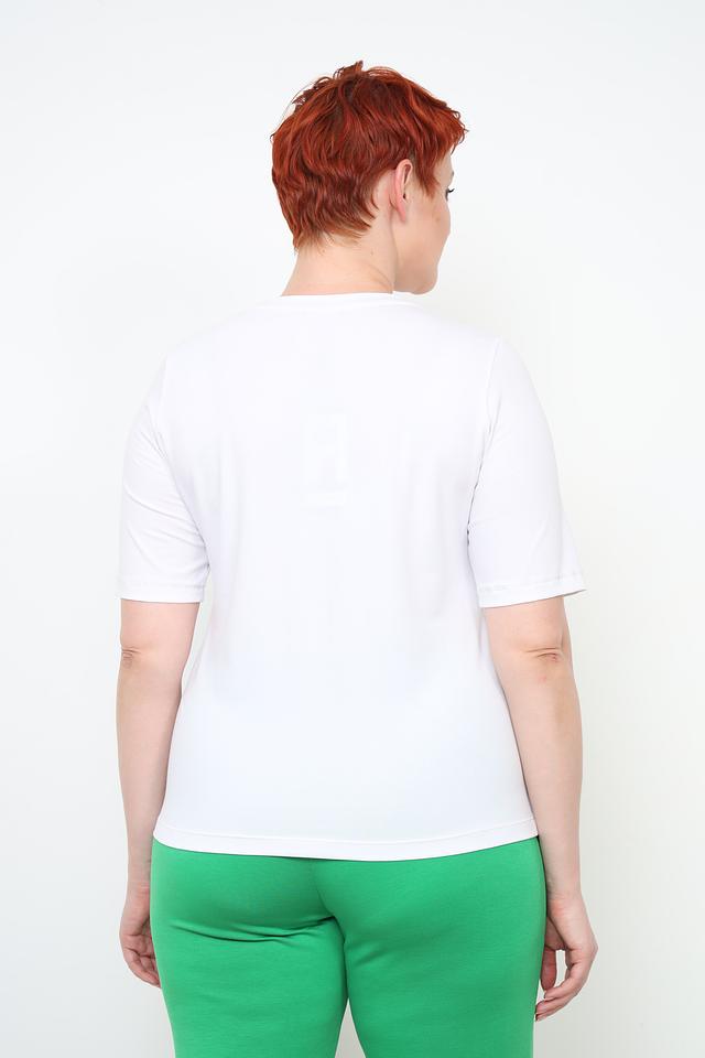Футболка имеет классический прямой крой, круглый вырез горловины и короткие рукава. Она идеально подходит для создания повседневных образов, а также для занятий спортом или активного отдыха. Сочетайте ее с джинсами, шортами или юбкой – она будет уместна в любой ситуации.