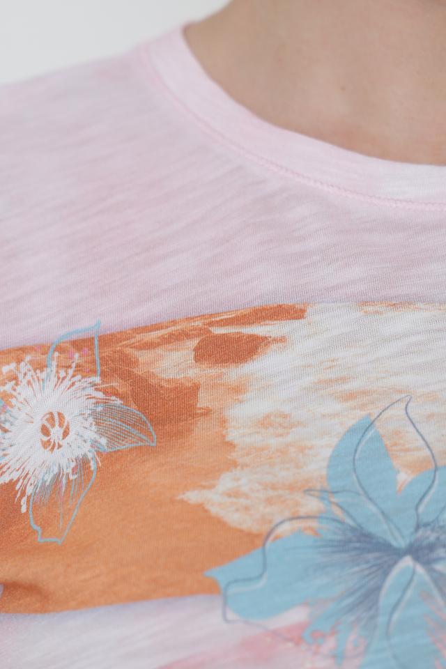 Розовая футболка от Thomas Rabe с ярким абстрактным принтом. Изготовлена из мягкой и приятной к телу ткани на основе вискозы и хлопка, обеспечивающей комфорт в носке. Стильный и оригинальный выбор для повседневного образа. Состав: вискоза 50%, хлопок 50%