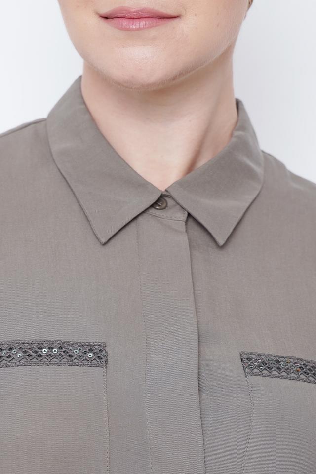 Стильное платье рубашка от Thomas Rabe серого цвета выполнено из 100% лиоцела. Удобный крой и оригинальный декор в виде декоративной отделки на карманах делают эту модель отличным выбором для повседневного гардероба. Состав: лиоцел 100%