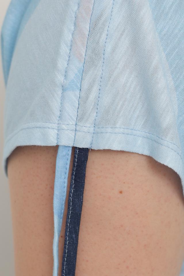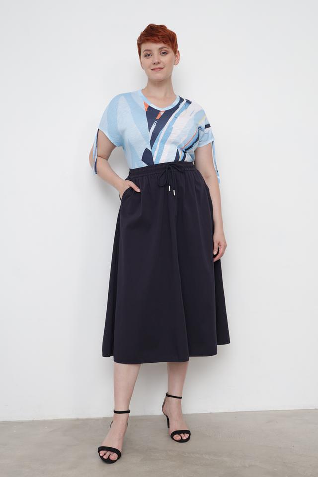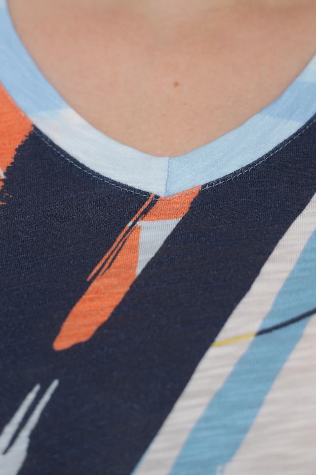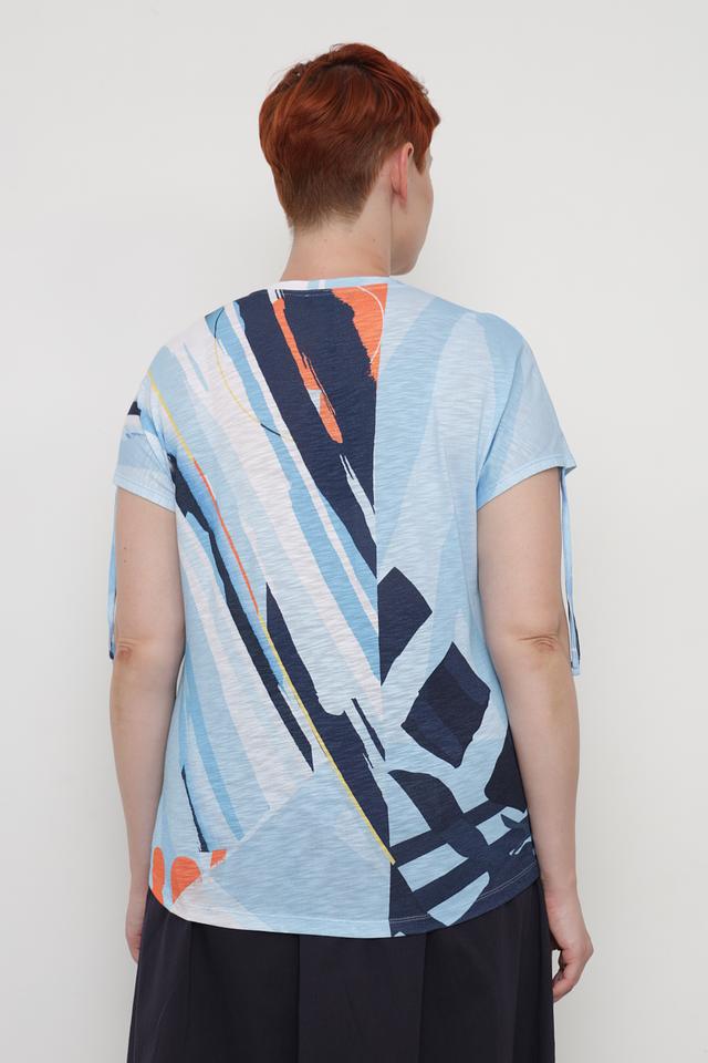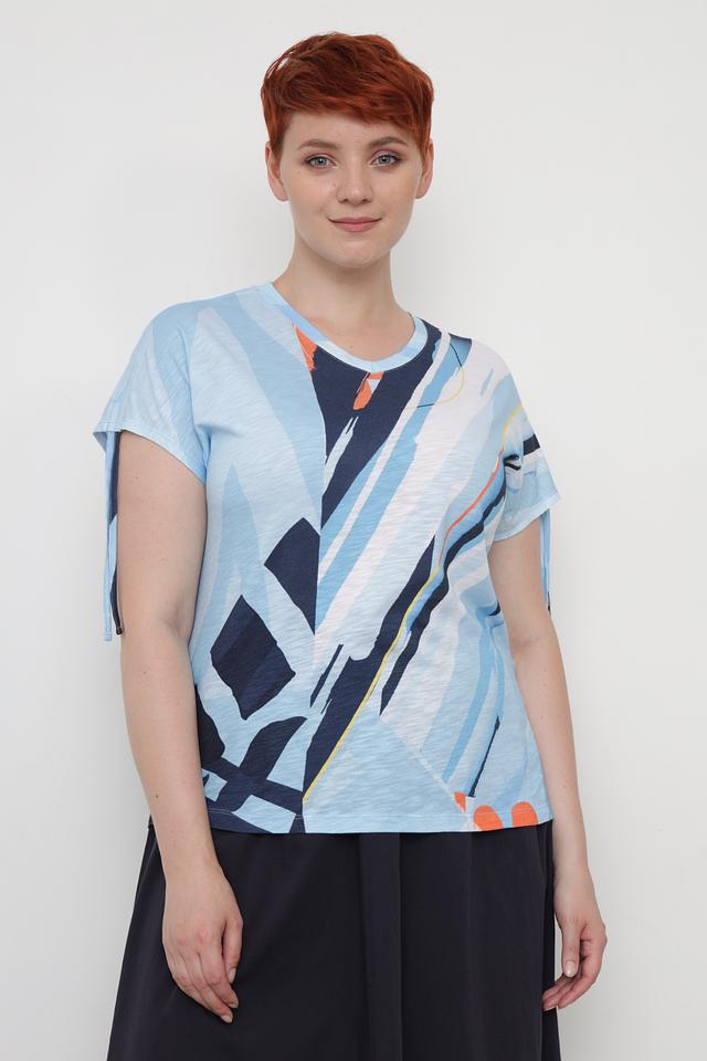 Женская футболка Thomas Rabe голубого цвета с оригинальным абстрактным принтом. Изготовлена из мягкой и приятной к телу ткани на основе вискозы и хлопка, обеспечивающей комфорт в носке. Состав: вискоза 50%, хлопок 50%