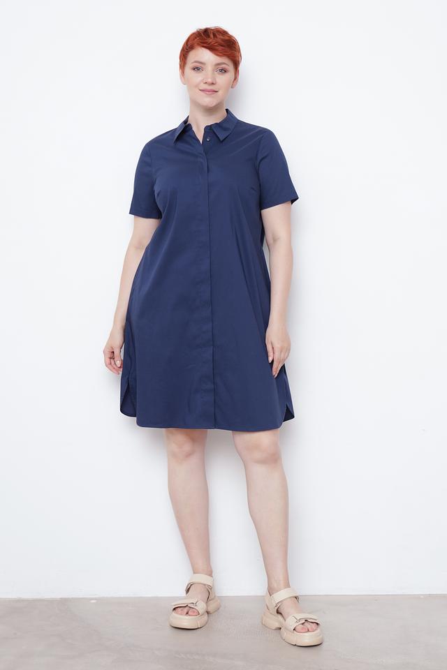 Хлопок обеспечивает комфорт и воздухопроницаемость, полиамид добавляет прочности, а эластан – эластичности и свободы движений. Платье имеет небольшие разрезы по бокам, что придает ему легкость и динамичность. Застежка на пуговицы позволяет регулировать степень прилегания и создавать различные образы.