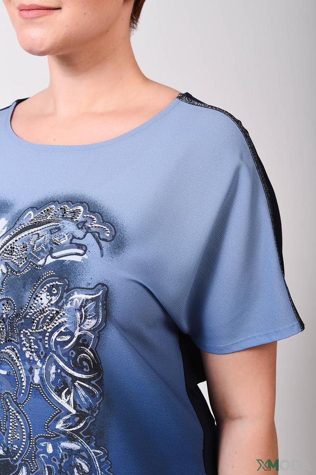 Женская футболка Thomas Rabe голубого цвета с оригинальным цветочным принтом. Модель выполнена из мягкой вискозы с добавлением эластана, обеспечивающего комфортную посадку по фигуре. Состав: вискоза 92%, эластан 8%