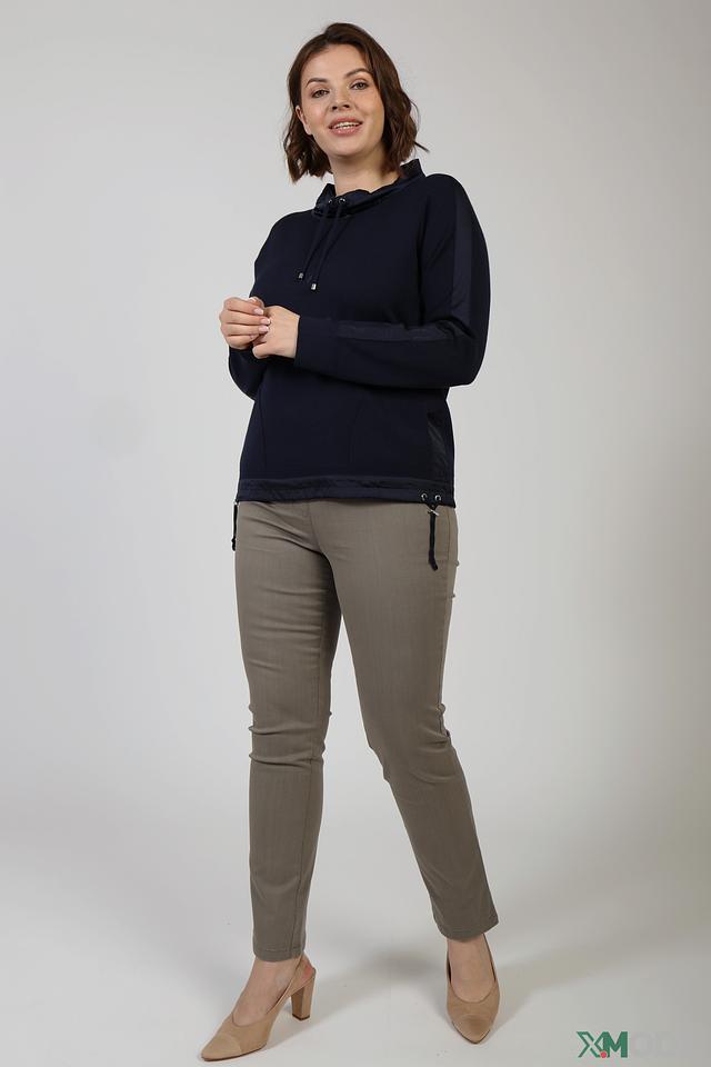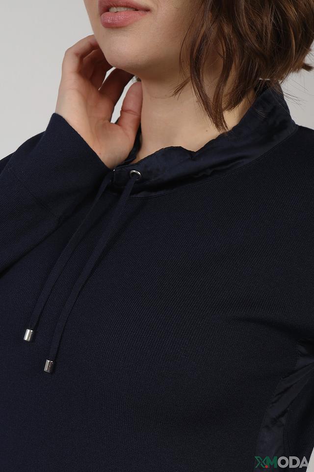 Тёмно-синий джемпер от Thomas Rabe с капюшоном и декоративными вставками. Модель выполнена из мягкого трикотажа, имеет удобный крой и практичные шнурки на капюшоне. Состав: модал 42%, полиакрил 38%, полиамид 20%