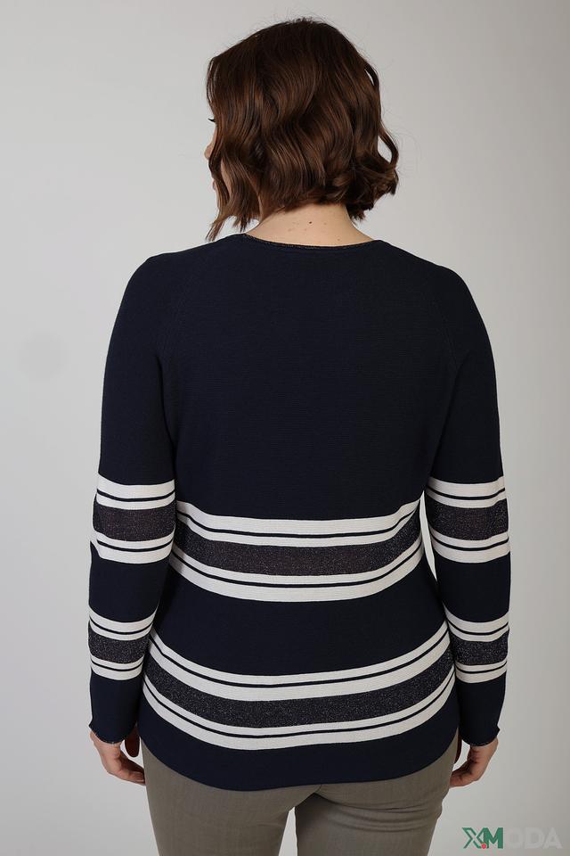 Женский пуловер Thomas Rabe темно-синего цвета с белыми полосами – стильная и комфортная модель на каждый день. Изготовлен из мягкого трикотажа с добавлением модала и полиакрила, обеспечивающего приятные тактильные ощущения и долговечность. Состав: модал 40%, полиакрил 35%, полиамид 12%, вискоза 9%, полиэстер 2%, сизаль 2%