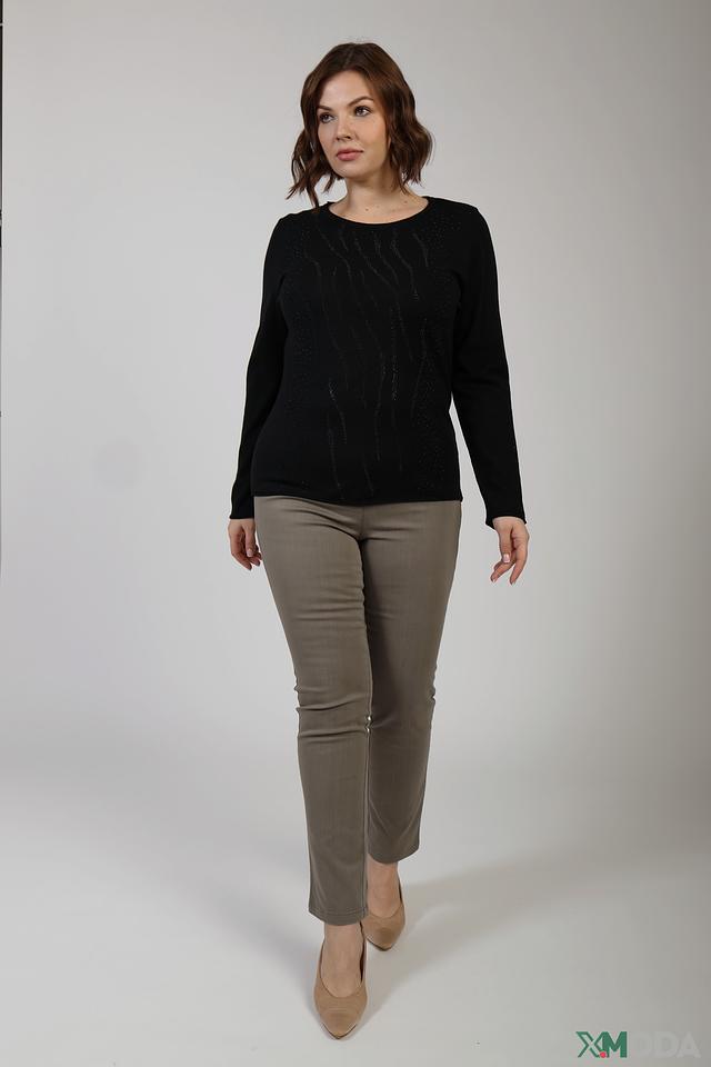 Пуловер имеет длинные рукава и слегка заниженную линию плеч, что делает его универсальным для создания различных образов. Он отлично сочетается с брюками, юбками и джинсами.