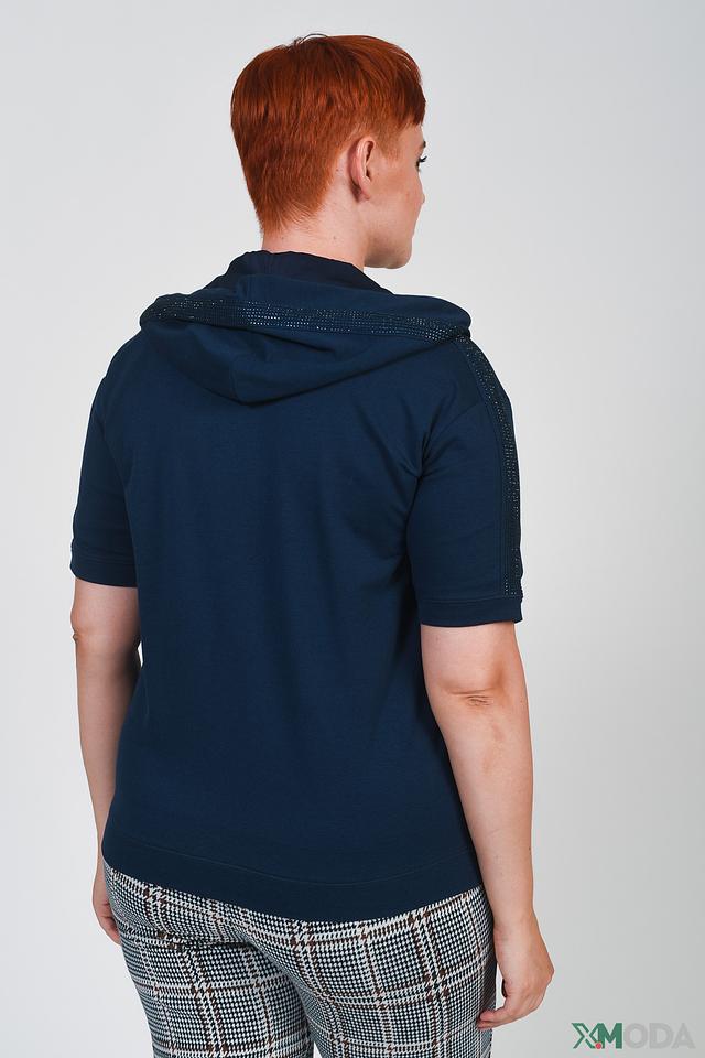 Синий жакет Thomas Rabe с коротким рукавом и капюшоном на молнии. Модель выполнена из мягкой ткани с добавлением хлопка и модала, обеспечивающей комфорт в носке. Застежка – молния. Состав: хлопок 47%, модал 47%, эластан 6%