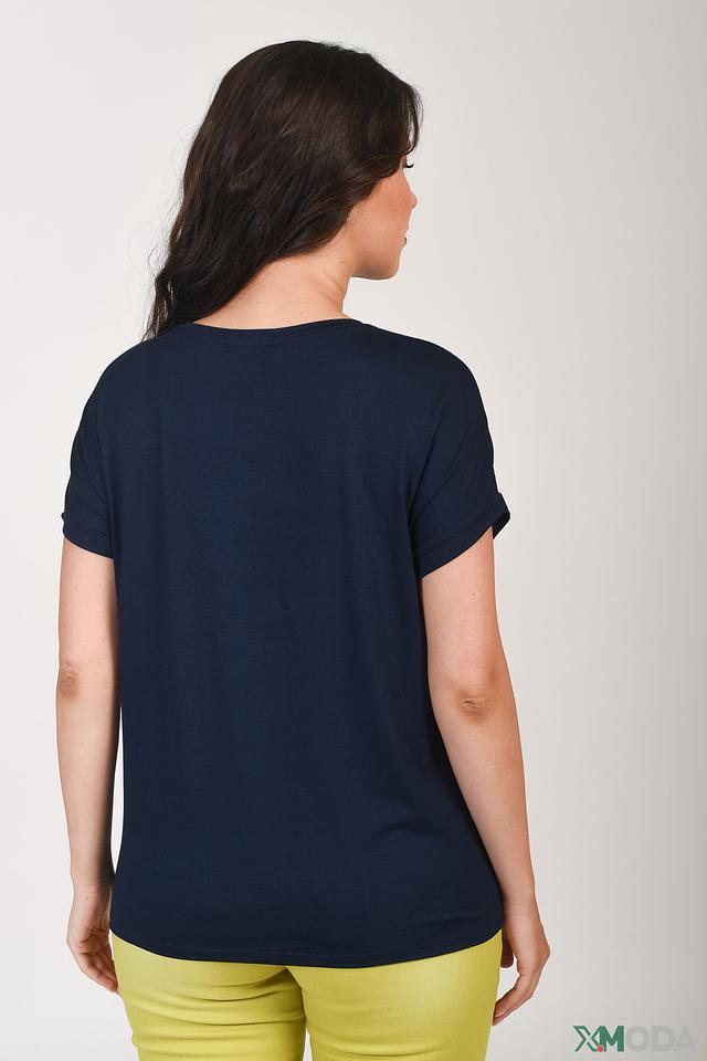 Женская футболка Thomas Rabe синего цвета с ярким геометрическим принтом. Изготовлена из мягкой вискозы с добавлением эластана для комфорта и хорошей посадки. Состав: вискоза 92%, эластан 8%