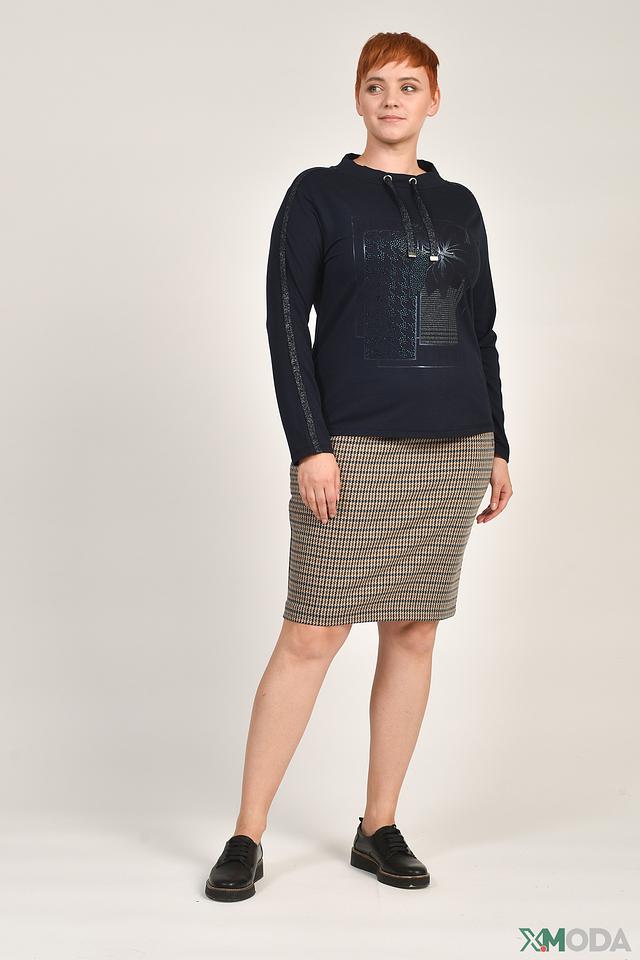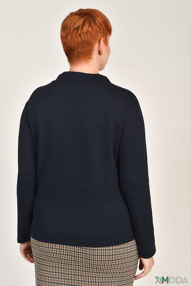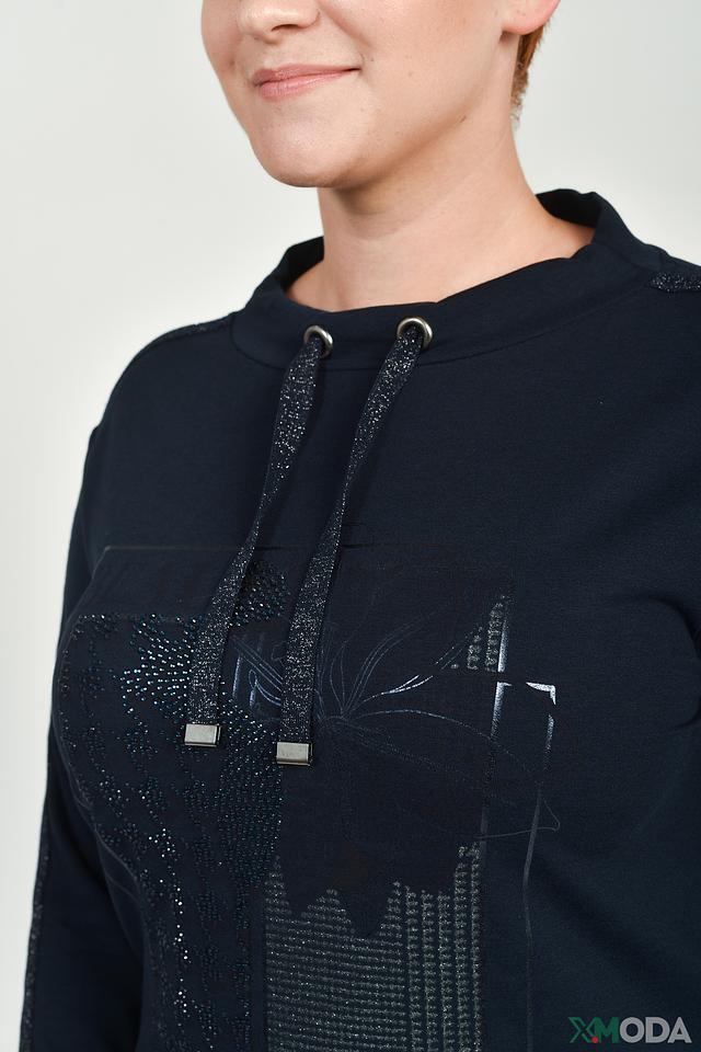 Стильный пуловер Thomas Rabe тёмно-синего цвета, украшенный декоративной аппликацией и блестками. Модель с небольшим воротником-стойкой и шнурками. Идеальный выбор для создания комфортного и модного образа. Состав: хлопок 48%, модал 48%, эластан 4%