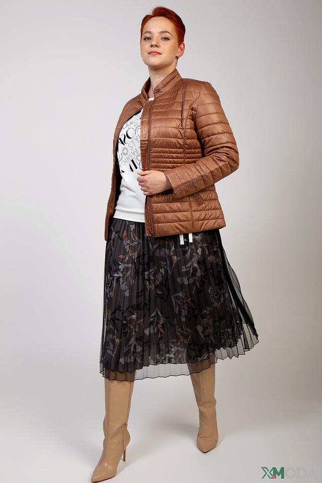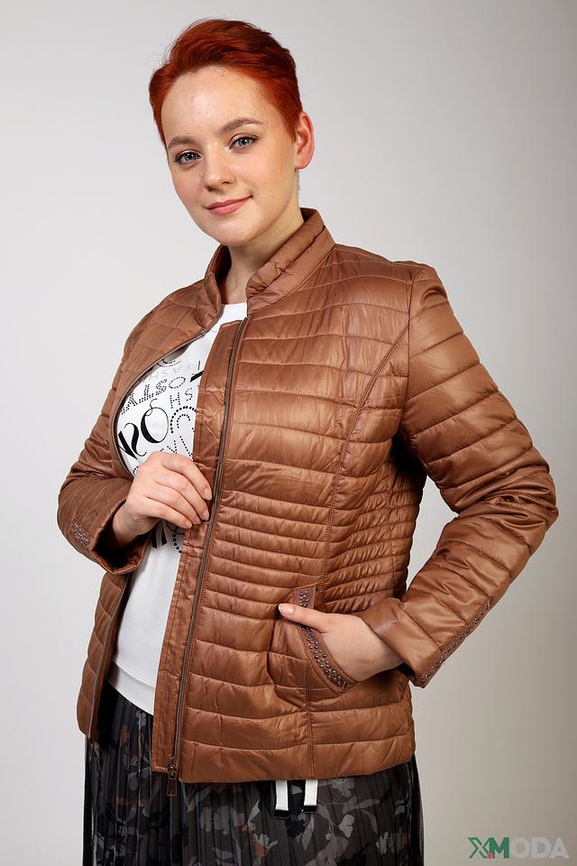 Модель имеет удобную застежку-молнию, воротник-стойку и боковые карманы. Рукава куртки слегка спущены, что обеспечивает комфортную посадку. Декоративная отделка на карманах и по краям куртки добавляет изысканности.