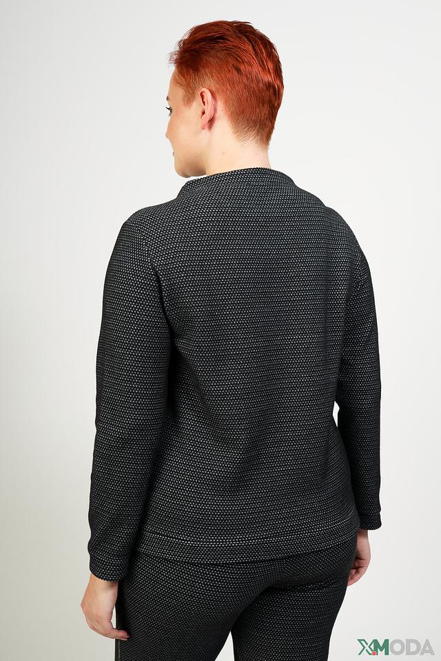 Пуловер имеет классический крой с округлым вырезом горловины и длинными рукавами. Его отличает оригинальный принт с изображением животного, выполненный в серебристых тонах, который добавляет образу изысканности и индивидуальности.