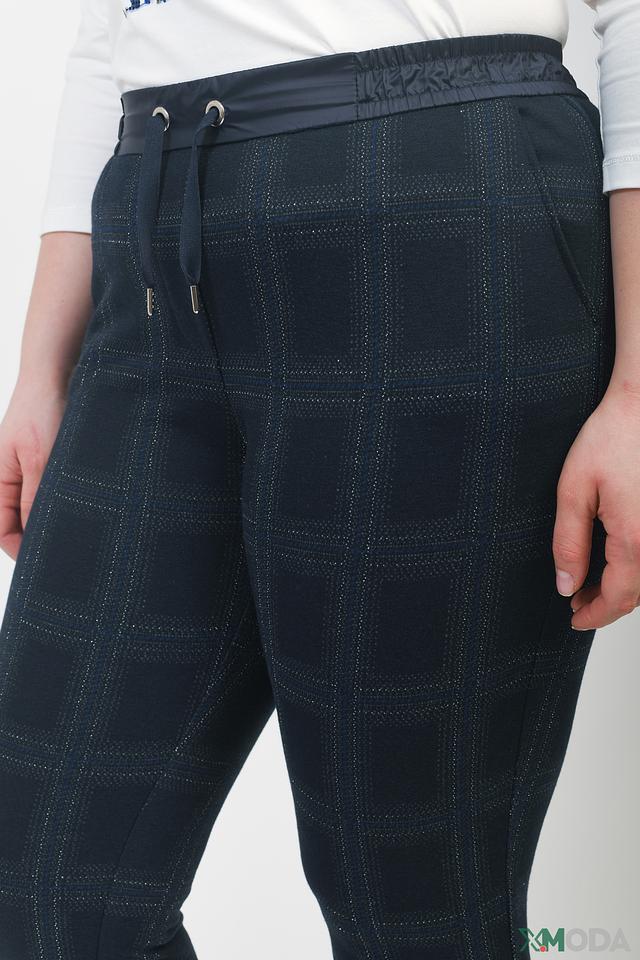 Женские брюки Thomas Rabe тёмно-синего цвета в клетку – удобная и стильная модель на эластичном поясе с завязками. Брюки выполнены из мягкой ткани с добавлением вискозы и эластана, обеспечивающих комфорт в носке. Состав: полиэстер 78%, вискоза 20%, эластан 2%