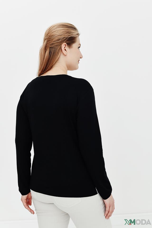 Женский джемпер Thomas Rabe чёрного цвета с ярким цветочным принтом. Модель с длинными рукавами и округлым вырезом горловины, выполненная из мягкого и приятного к телу трикотажа. Состав: вискоза 73%, полиэстер 23%, эластан 4%