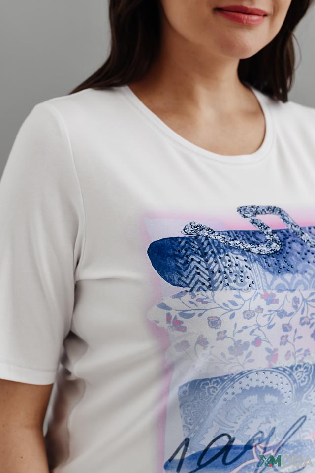 Белая футболка Thomas Rabe с ярким цветочным принтом и надписью. Изготовлена из мягкой вискозы с добавлением эластана для комфорта и хорошей посадки. Состав: вискоза 92%, эластан 8%